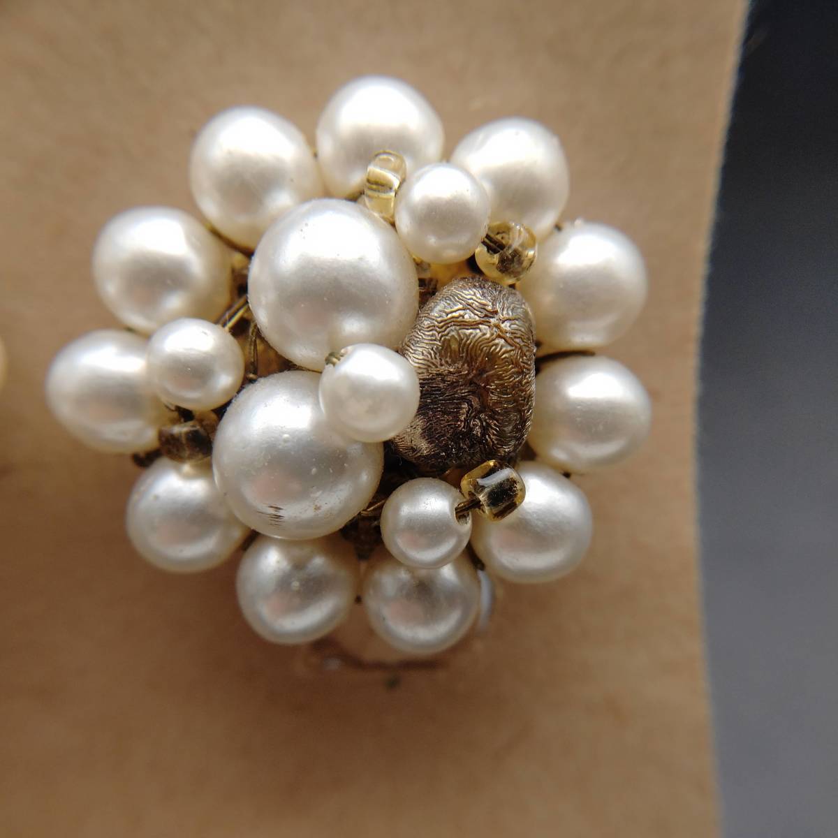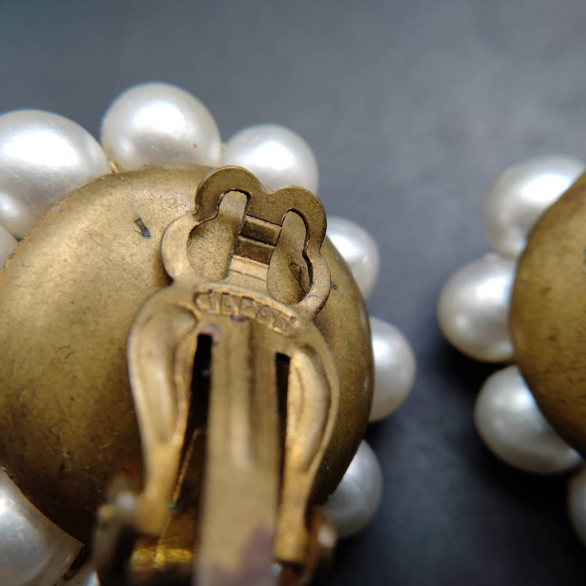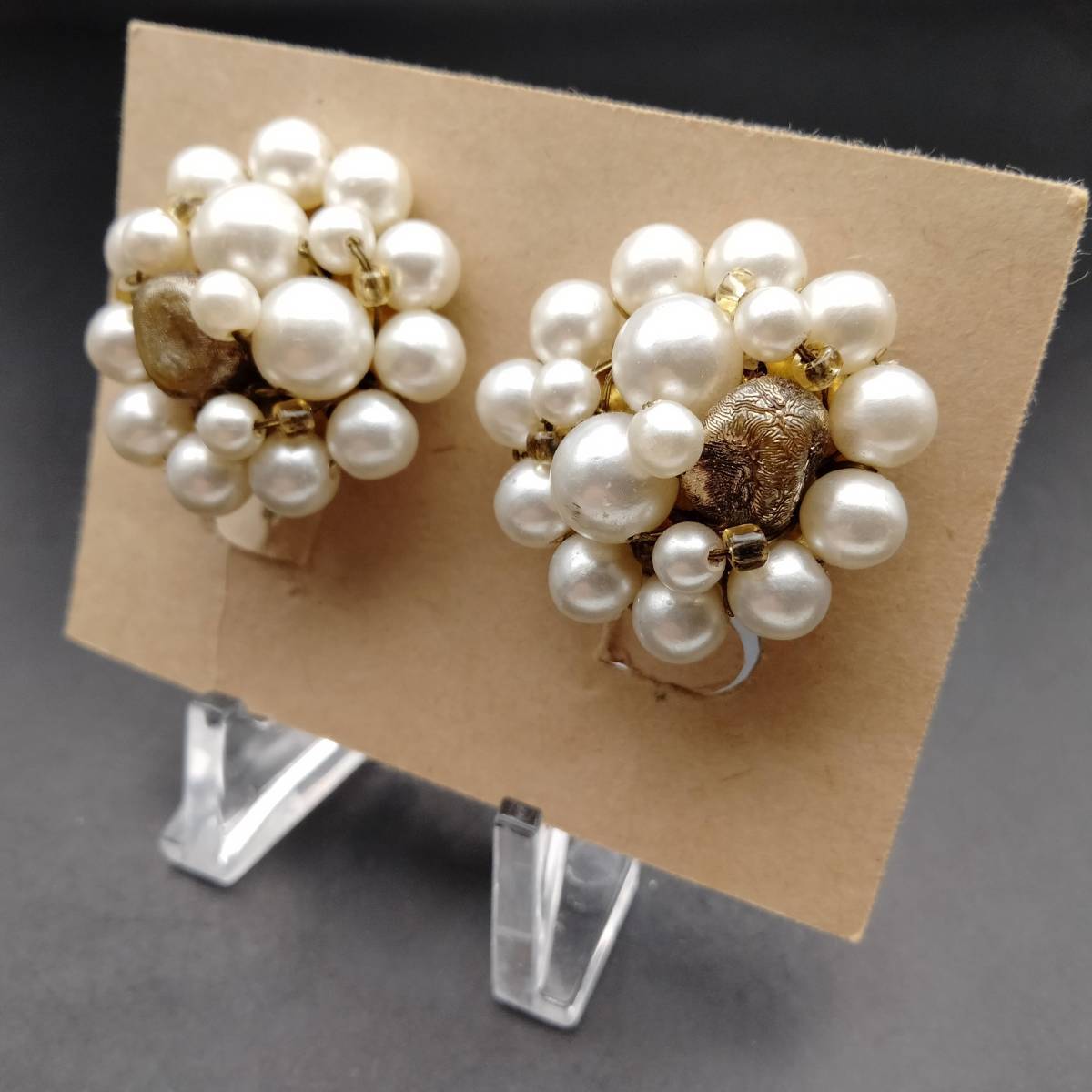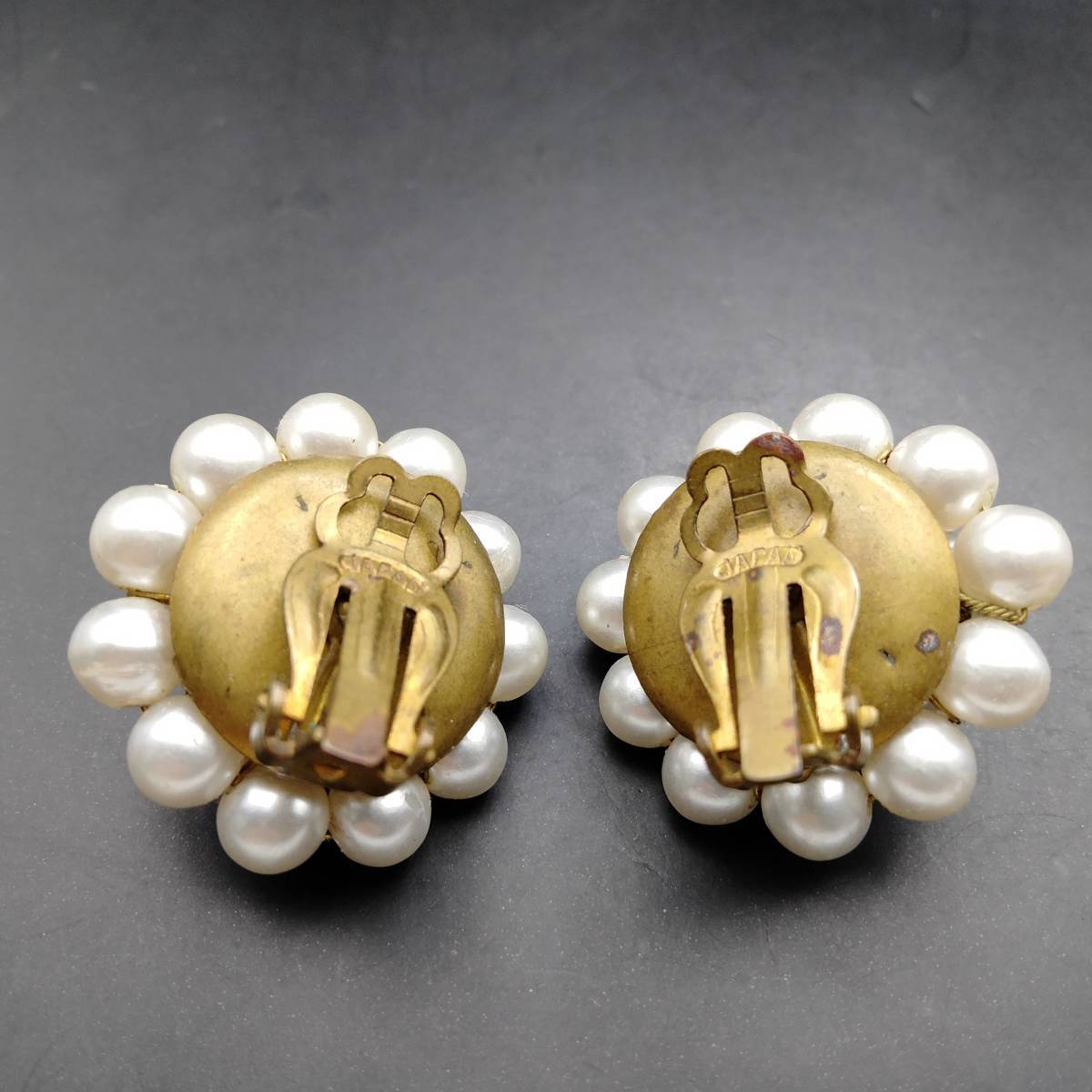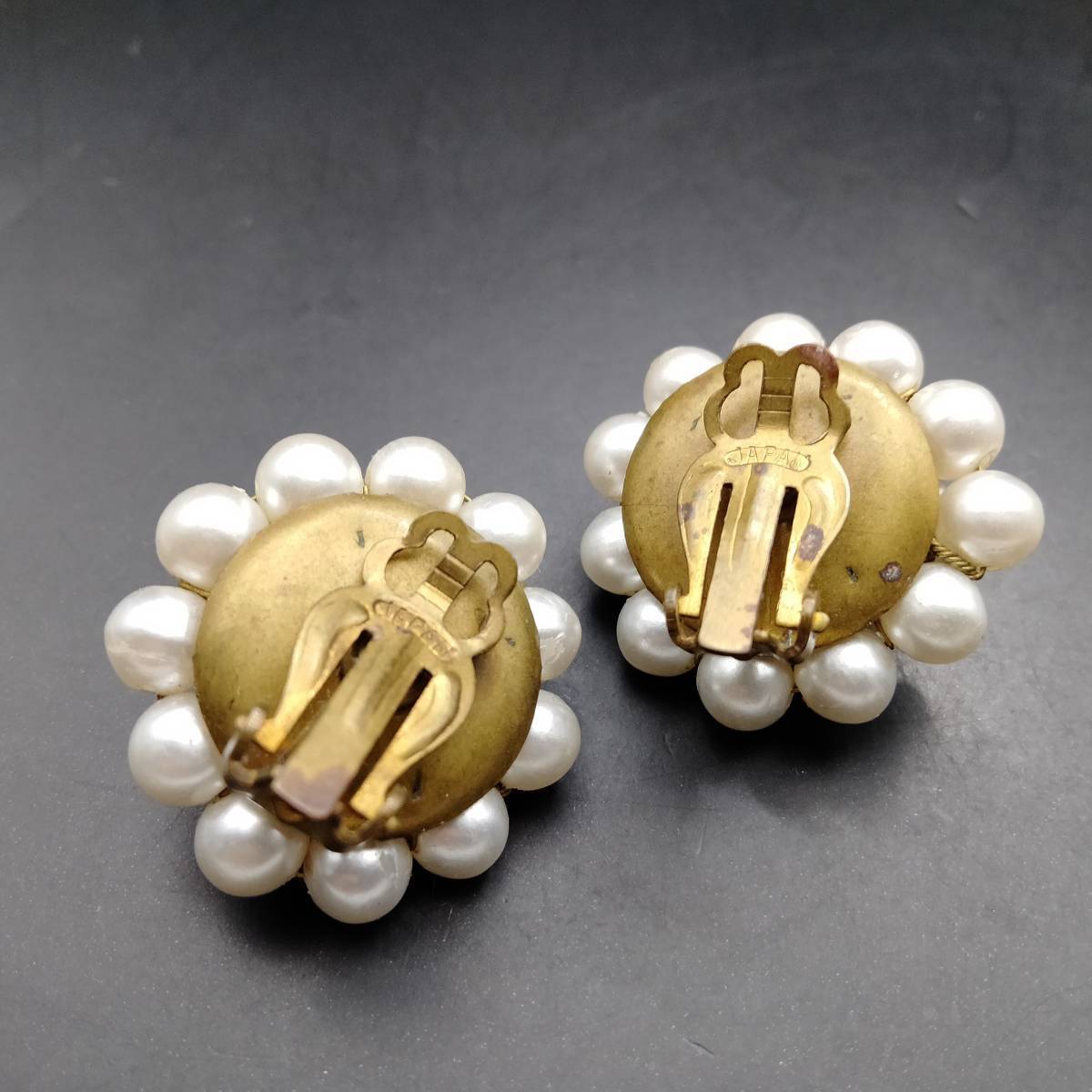 JAPAN ホワイト フェイク パール フラワー モチーフ ビンテージ ピアス イヤリング 昭和レトロ コスチューム ジュエリー 輸入 7S-V