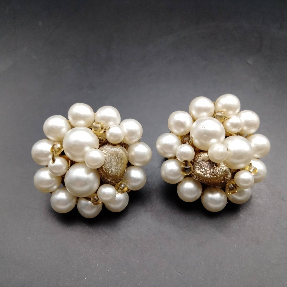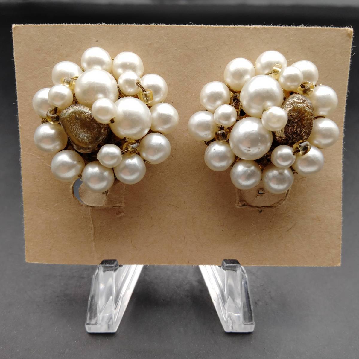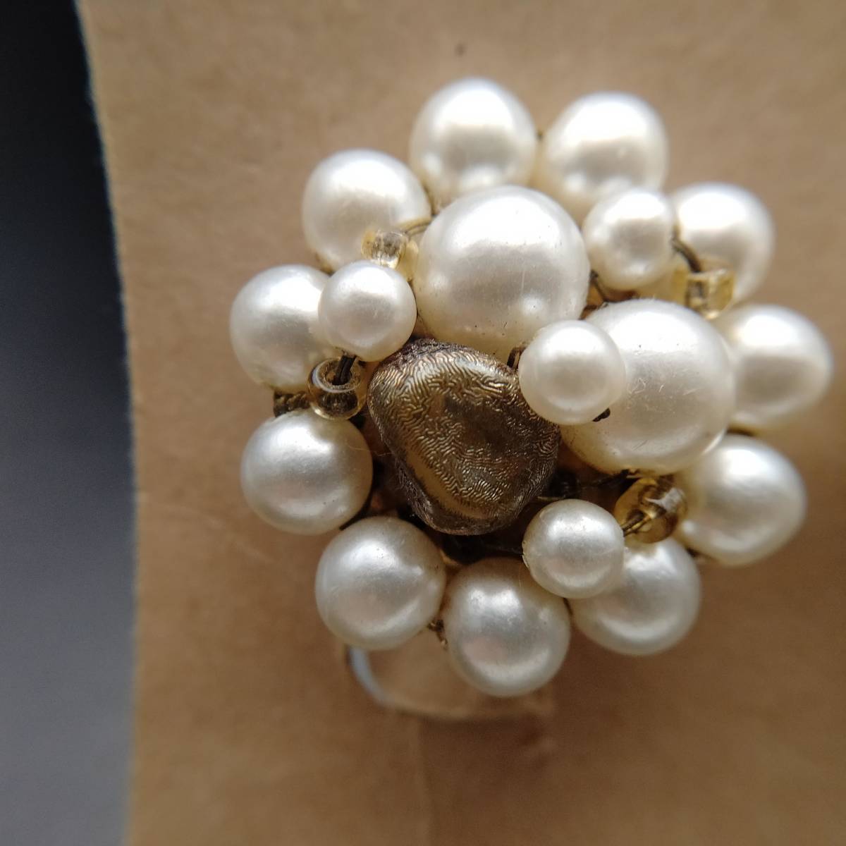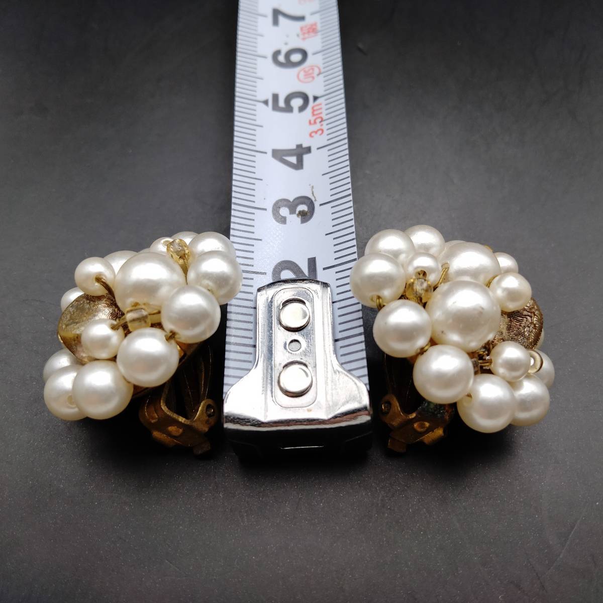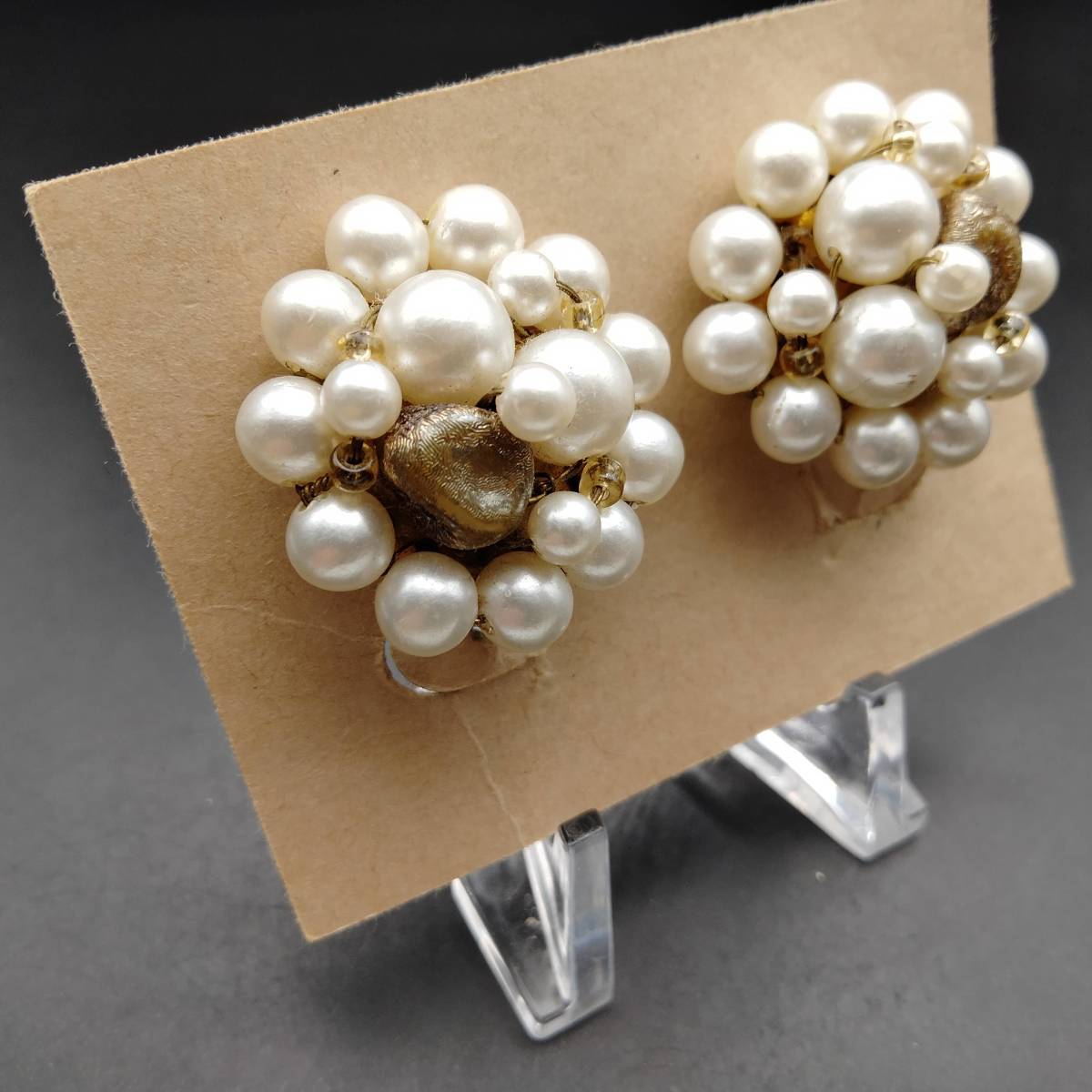 JAPAN ホワイト フェイク パール フラワー モチーフ ビンテージ ピアス イヤリング 昭和レトロ コスチューム ジュエリー 輸入 7S-V