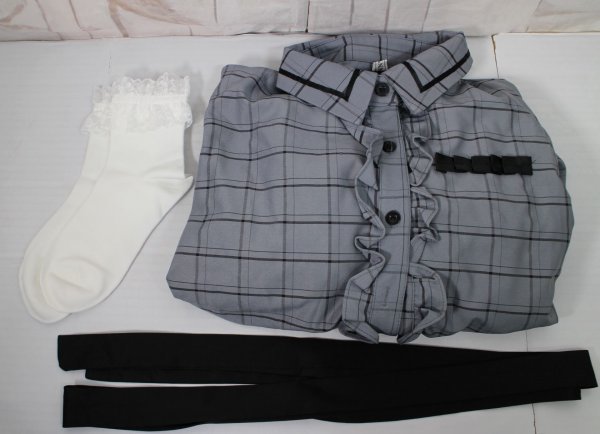 15 04472 ☆ サニーステップ 靴下付き チェック柄 ワンピース グレー ロリータ Aライン ひざ丈 2XL レディース【アウトレット品】