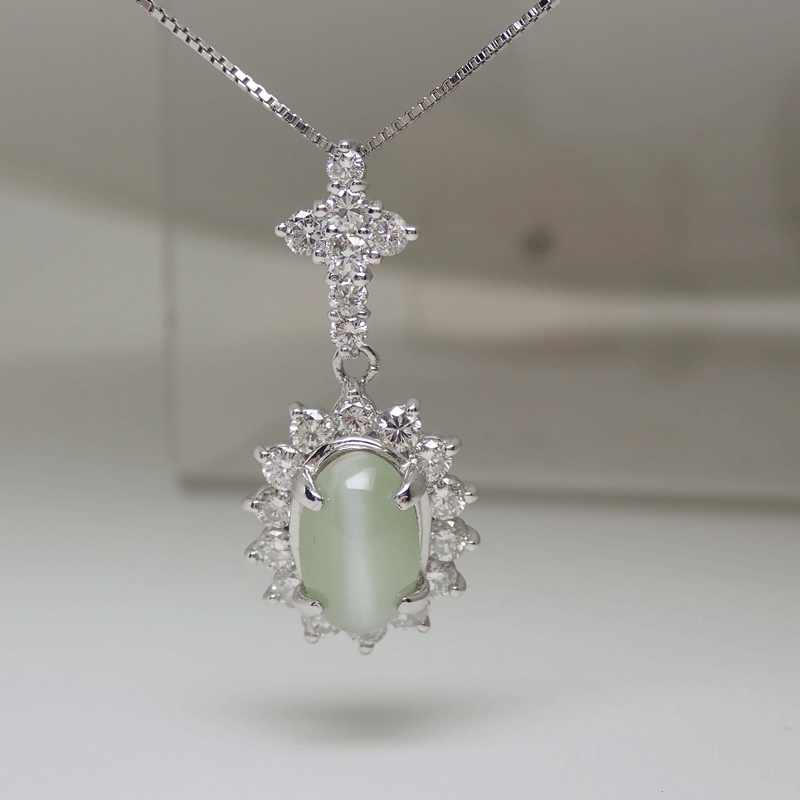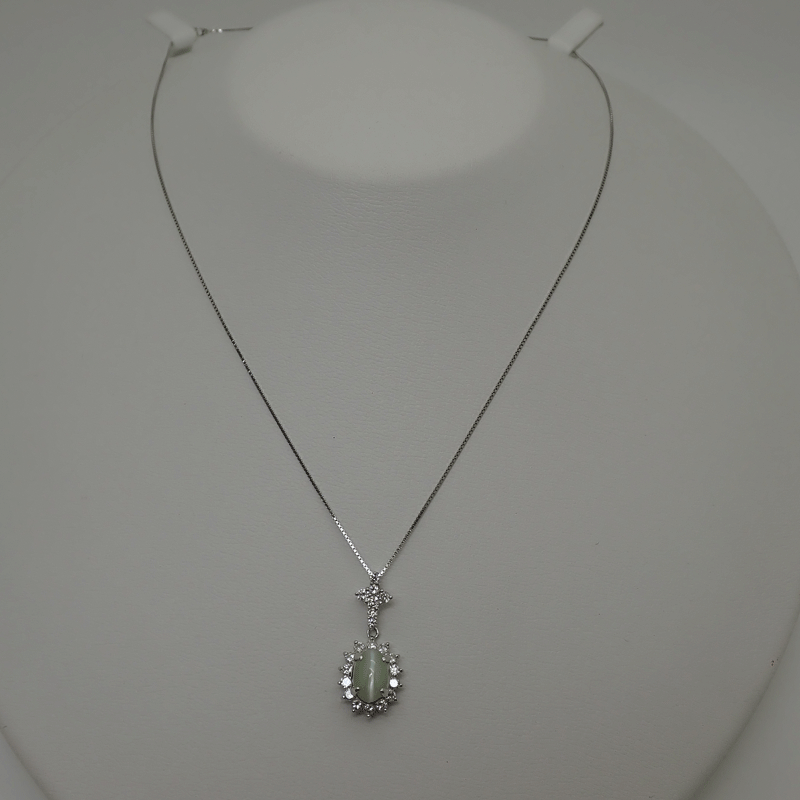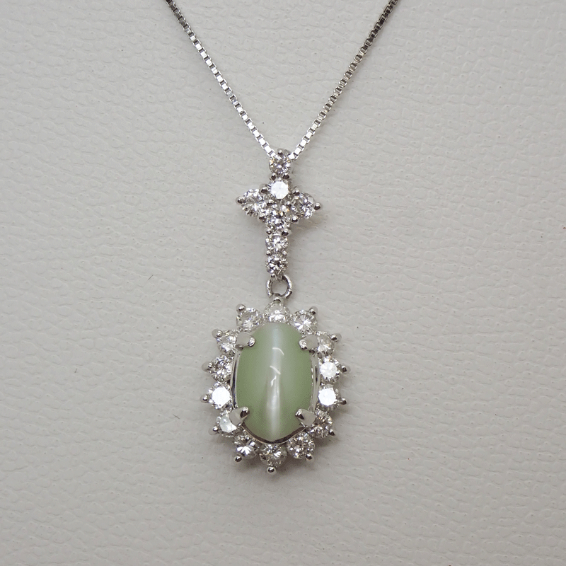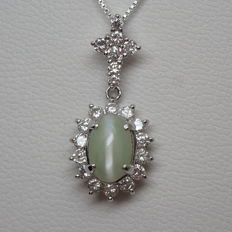 商品名 Pt850/PT900 プラチナ 天然クリソベルキャッツアイ ダイヤモンド ネックレス 2.78ct D0.77ct 上質 4.7g 新品同様美品 送料無料!!