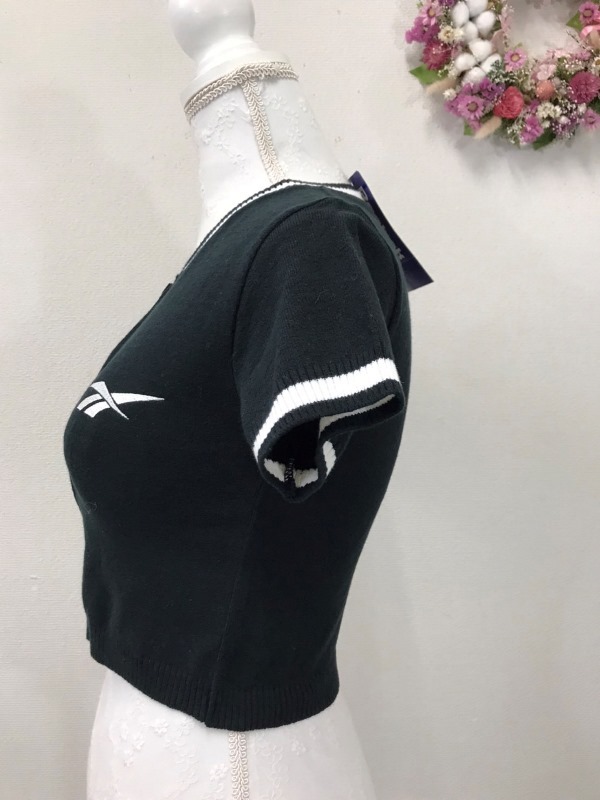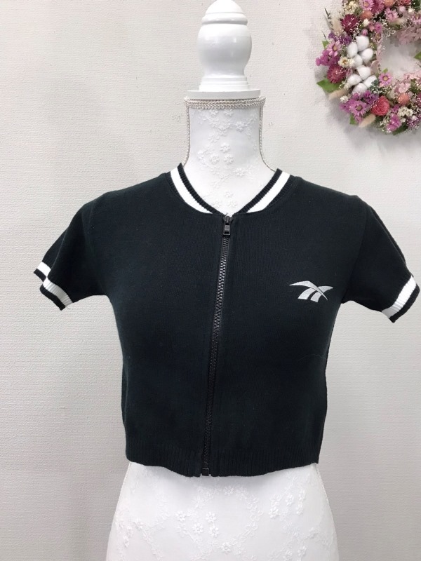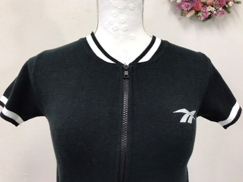 1362 レディース 【 Reebok 】新品本体価格¥9,800 半袖ニットカーディガン  サイズ:M 色:ブラック