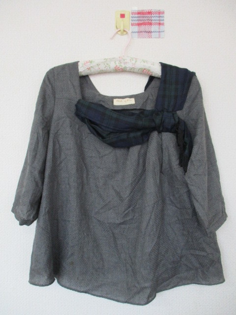 ★ me you 七分袖 ハンドメイド風 チュニック グレー