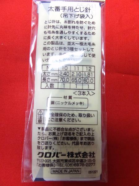 送料62円~ クロバーとじ針 太番手用 並太~極太用 3本入 マスクのゴム通し、ひも通しにも使えます