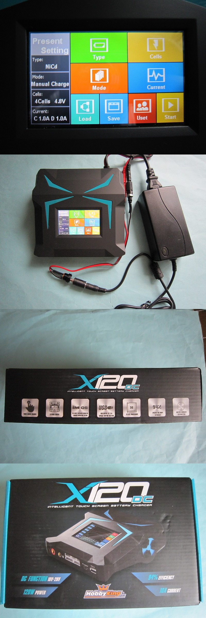 ①X120充電器が超クールな美しさとフルカラーのタッチスクリーンで、最新かつ最も革新的なバッテリー充電器です。