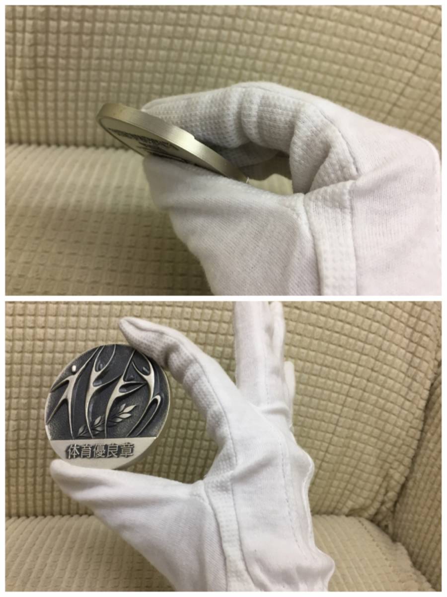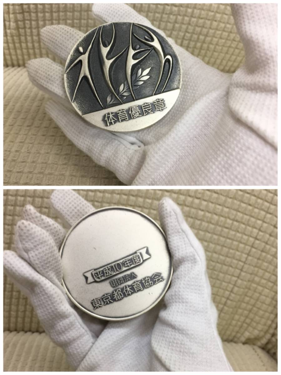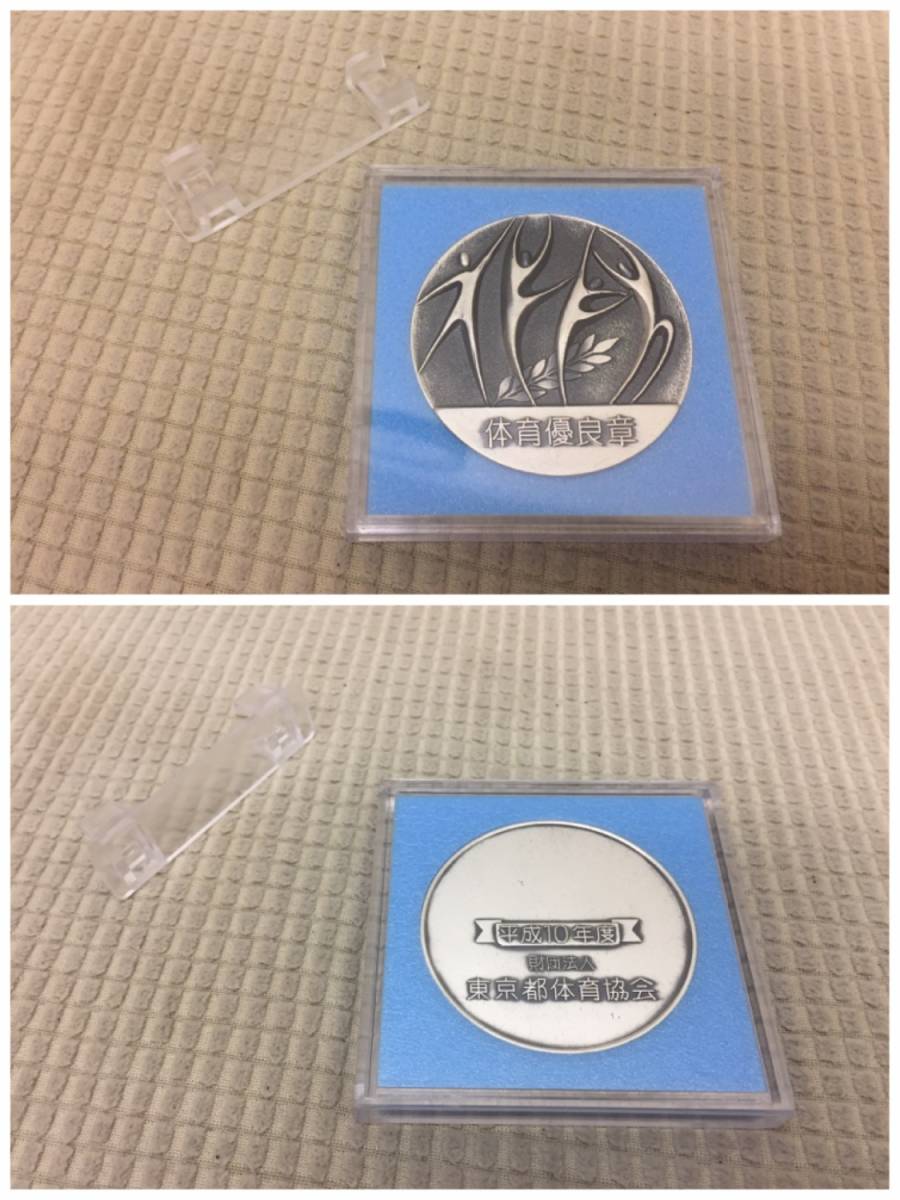 ◎サイズ メダルの 直径:約5.8cm 厚さ:約0.5cm 重さ:約104g 箱やケース込み総重量:約156g ※多少誤差は生じると思います。 -------------- ◎状態 中古。 長期保管品。 素材を表すような表記は見当たりません。 いぶしたような銀色に見えます。 メダルには多少擦り傷など付いています。 箱は折れや汚れが付いています。 のしにも汚れや折れ、破れがあります。 平成10年の物のようです。 年代物の長期保管品です。