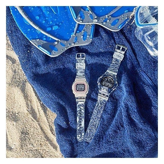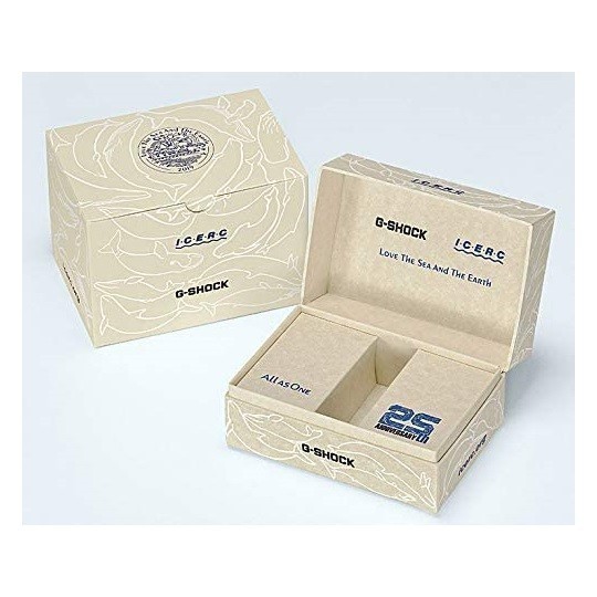 海をイメージしたスケルトンカラーのバンドには「アイサーチ・ジャパン」のロゴと24頭のクジラ(G-SHOCK)を印刷しました。