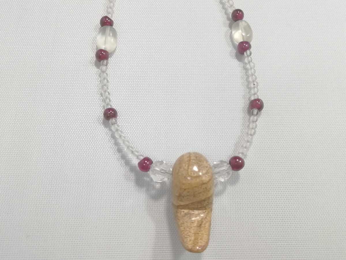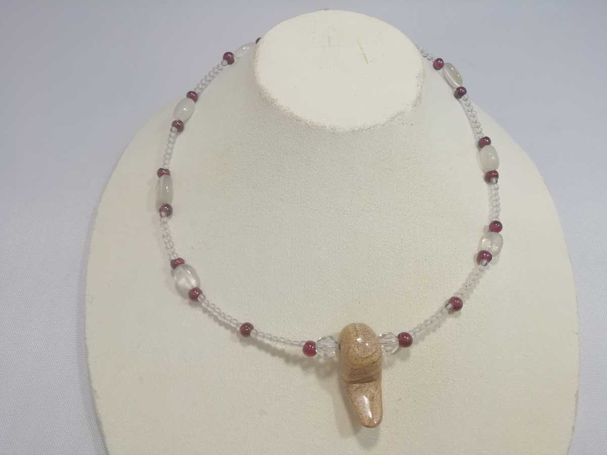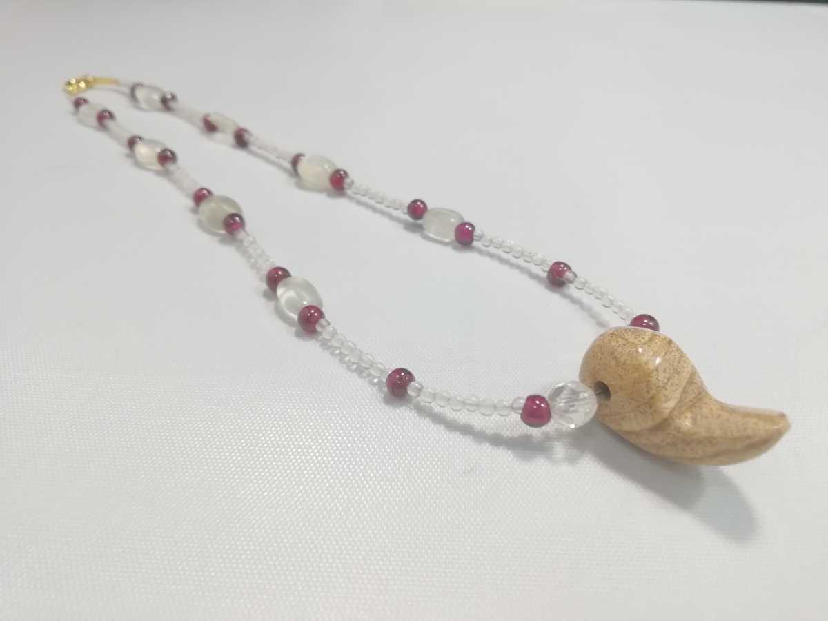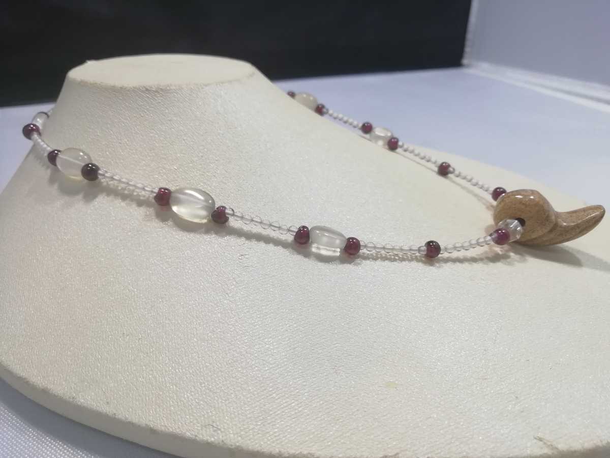 天然ガーネット ム−ンストーン 水晶ネックレス ファンシージャスパー勾玉ペンダント