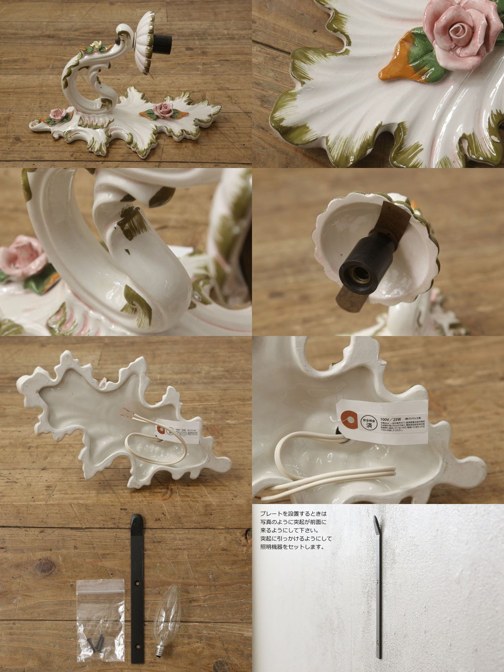 R-061415 中古 美品 イタリア カポディモンテ ロココ 磁器製ウォールランプ(ウォールライト、壁掛け照明、壁付け照明)(R-061415)