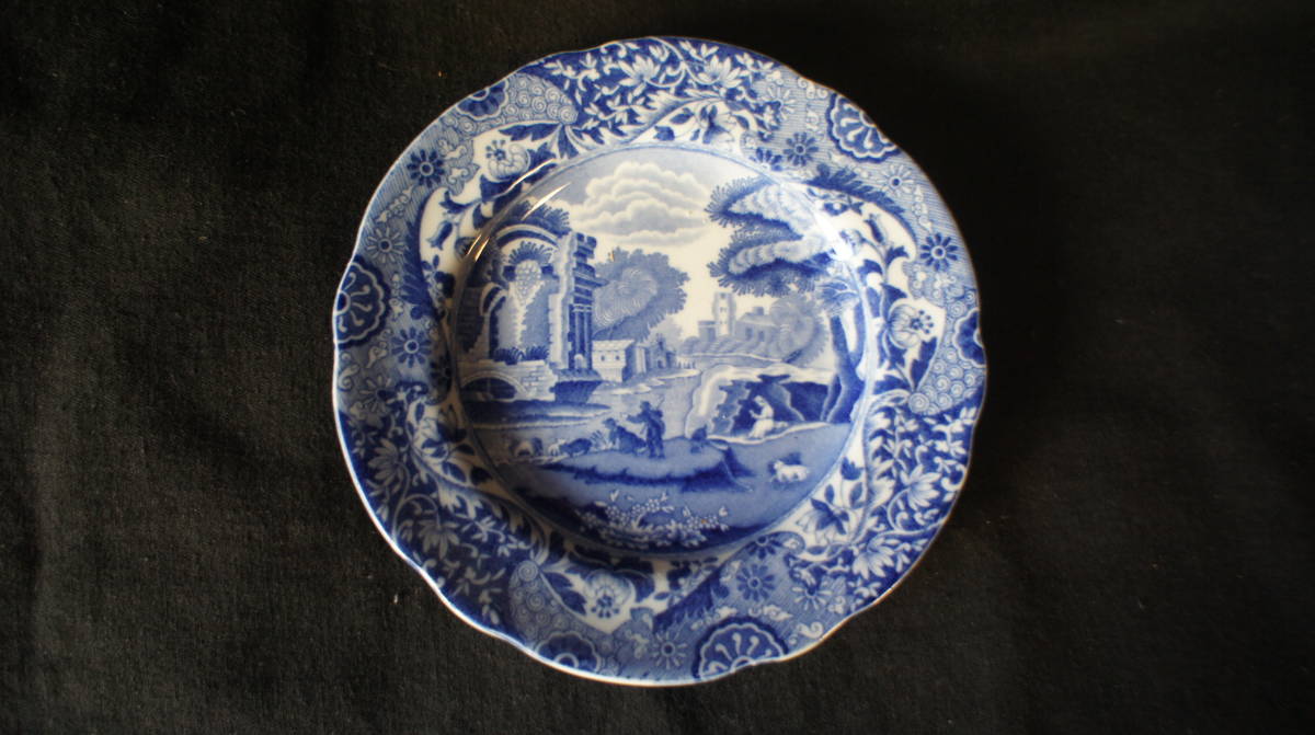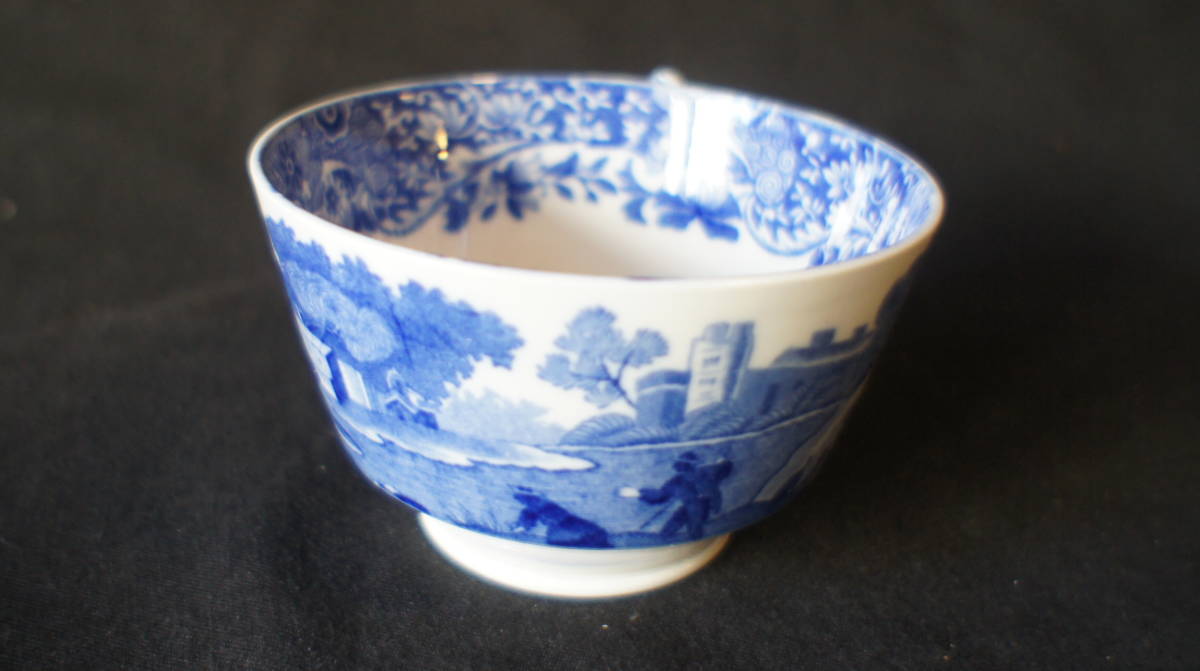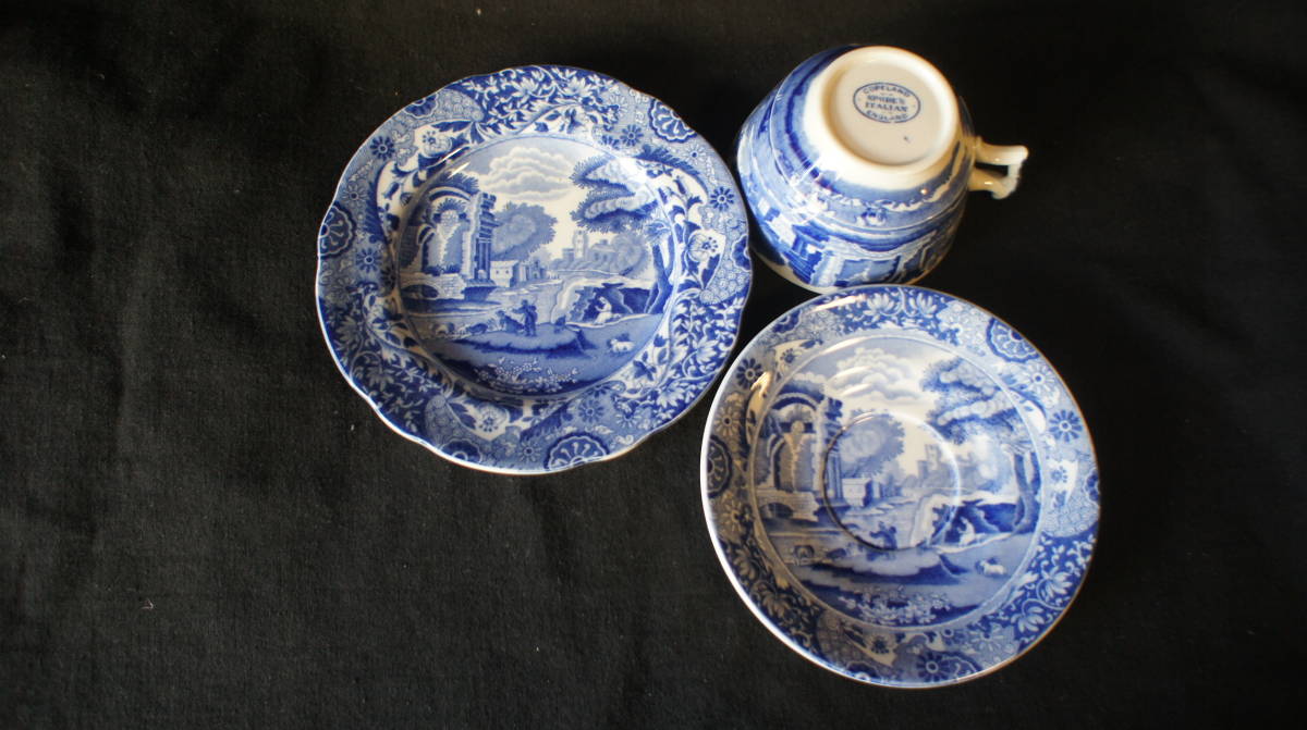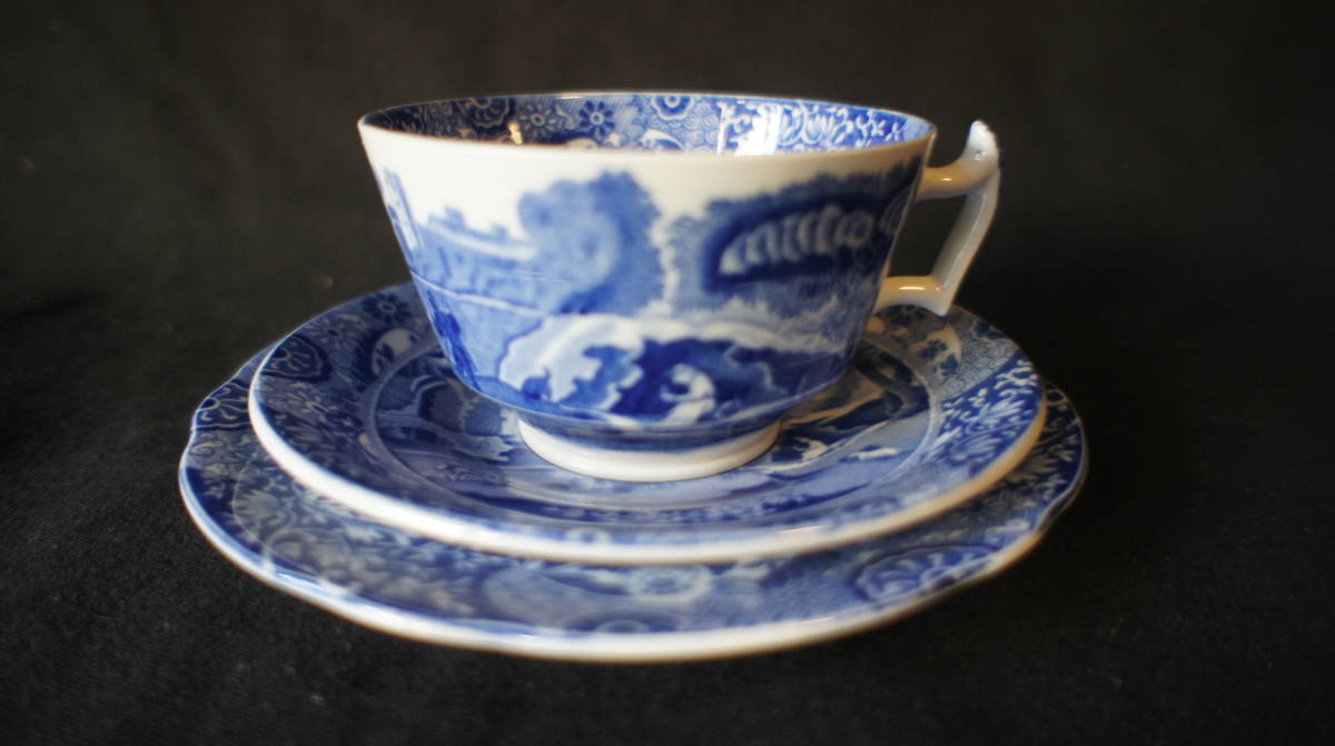 本場のブルー&ホワイトが素晴らしい 英国コープランド 印判手の代表作「イタリアン」トリオ ビンテージ 割れ、カゲなし完品