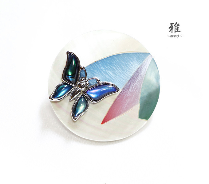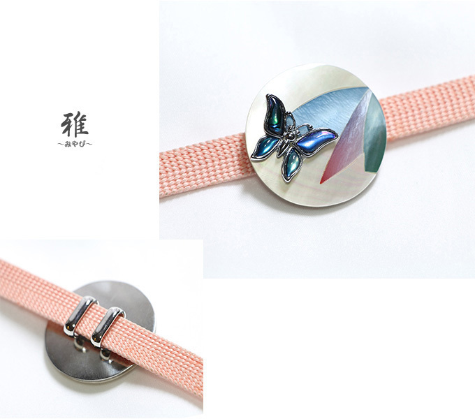 【 雅 】 優しい蝶。o○天然白蝶貝 帯留め*三分紐専用