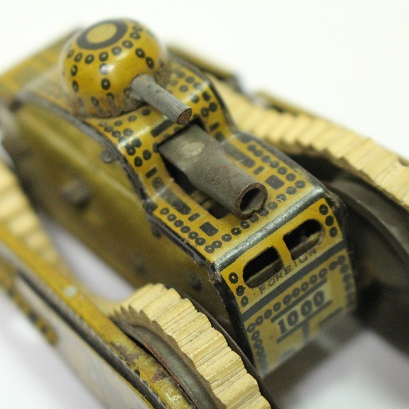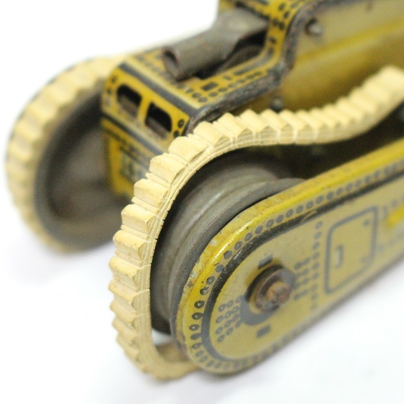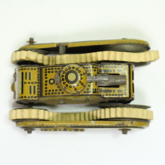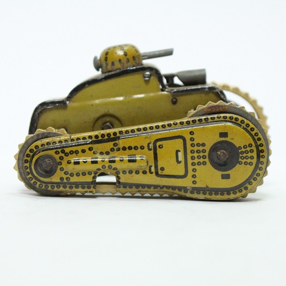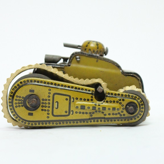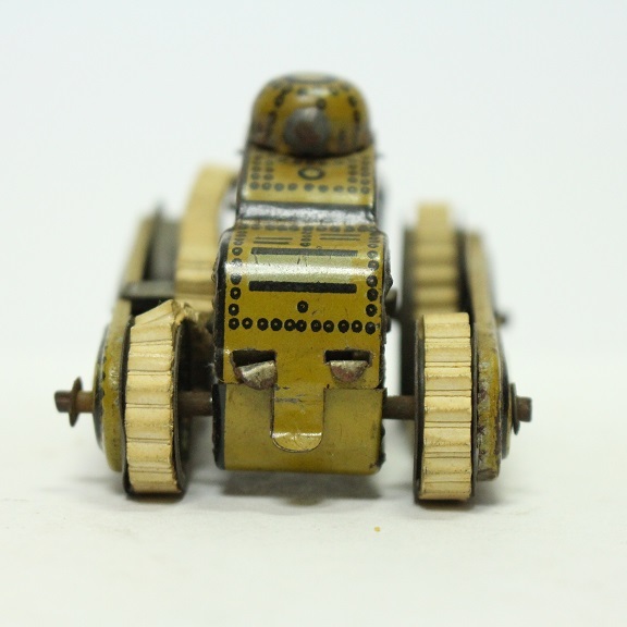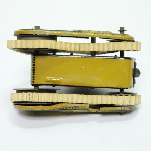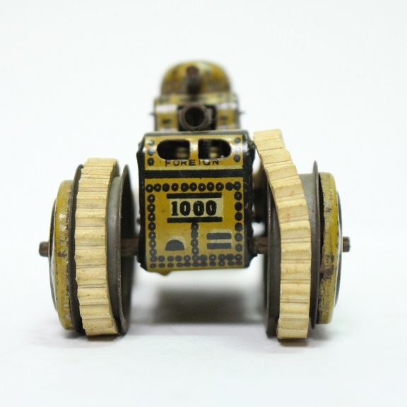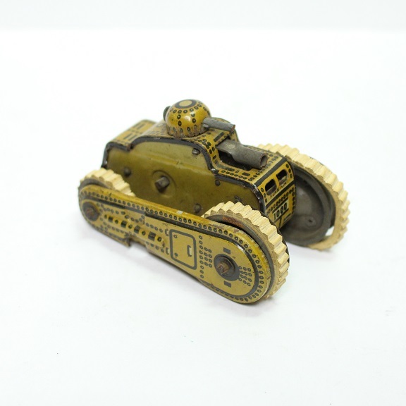 素材:ブリキ・他。重さ約66g。ゴムがのび、ぜんまい動かないものとお考えください。サイズ約7.3cm×5cm。高さ約4.7cm。