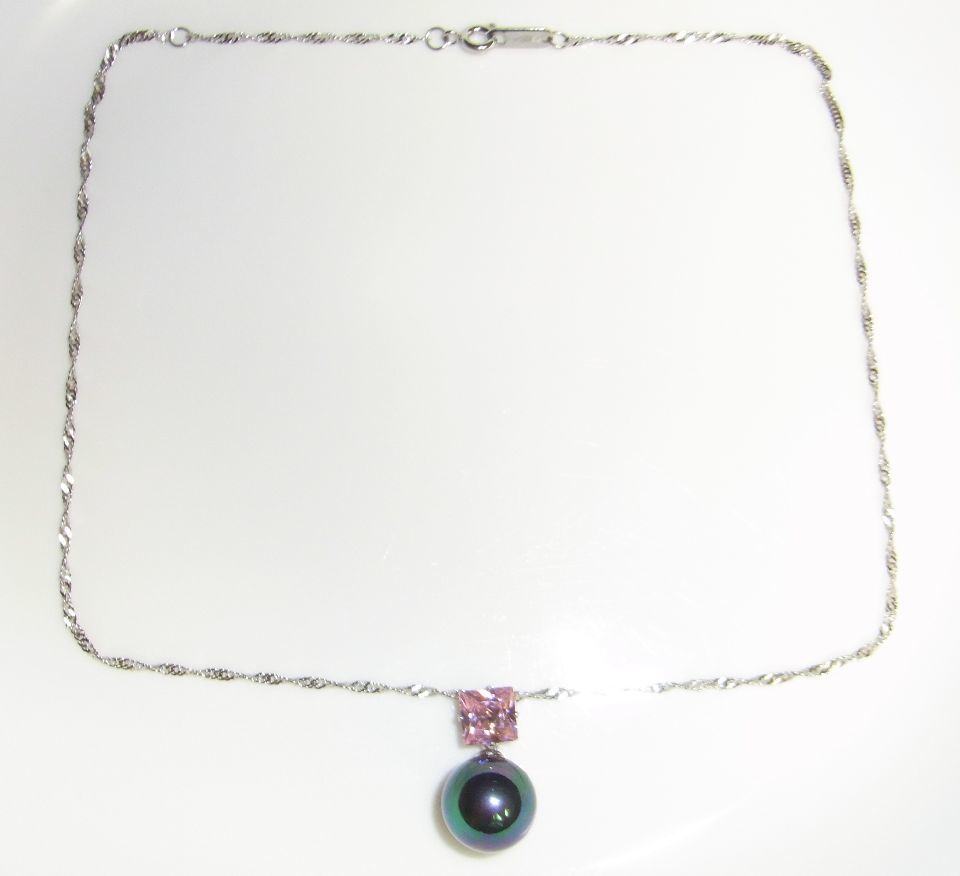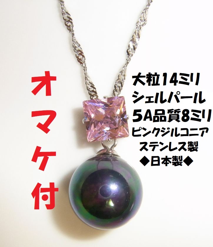 ◆大粒 黒真珠 ピンクダイヤ CZ ステンレス ネックレス ペンダント◆ | |||