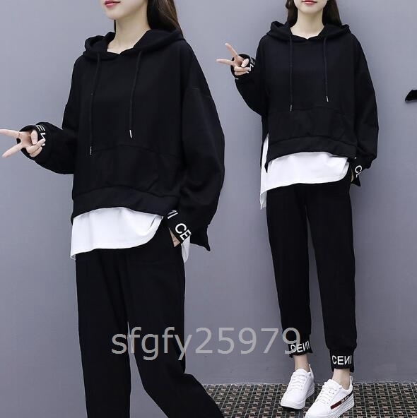C954☆スウェット ジャージ 上下セット レディース スポーツ セットアップ パーカー 長袖 部屋着 おしゃれ XL~5XL