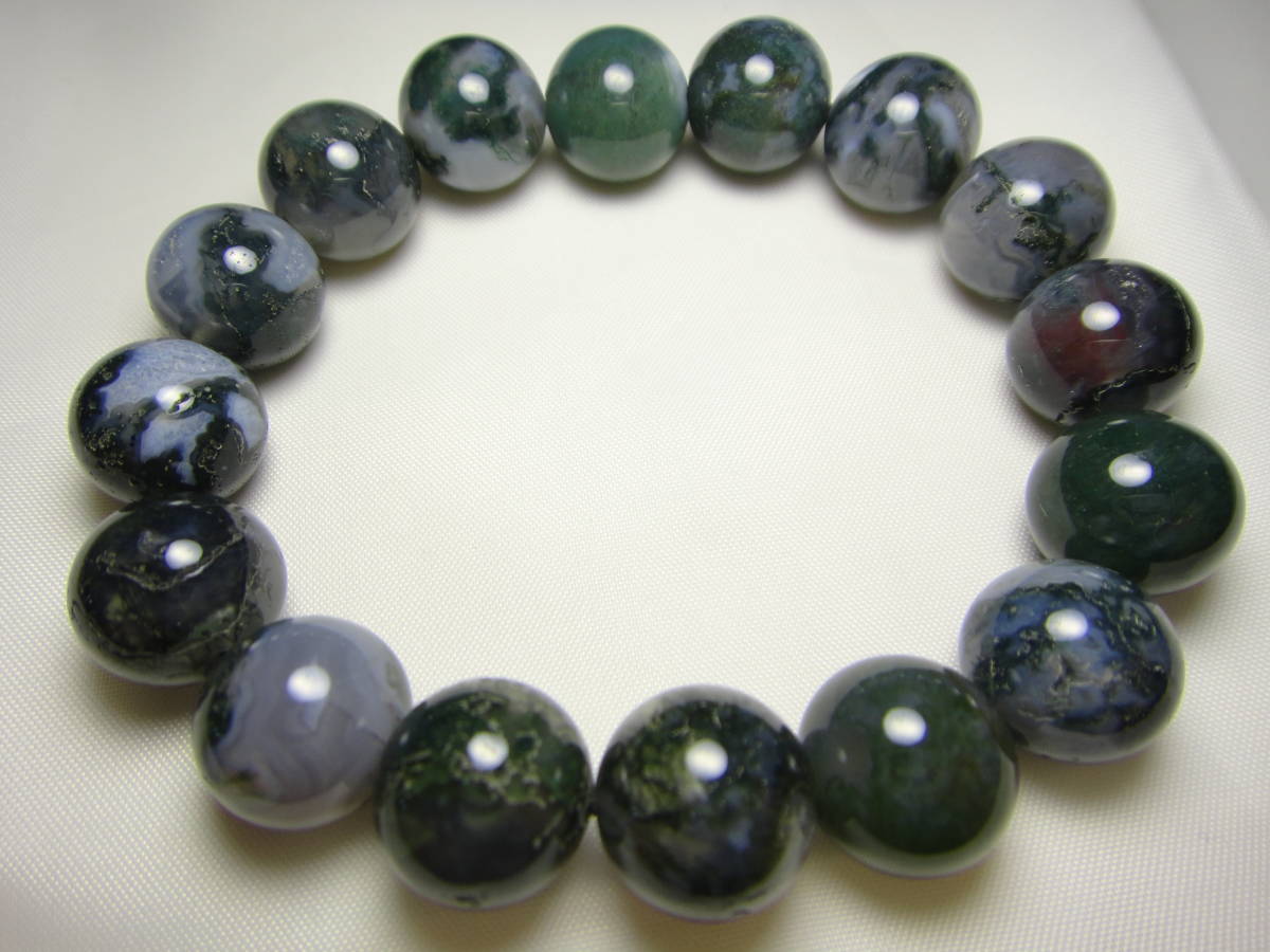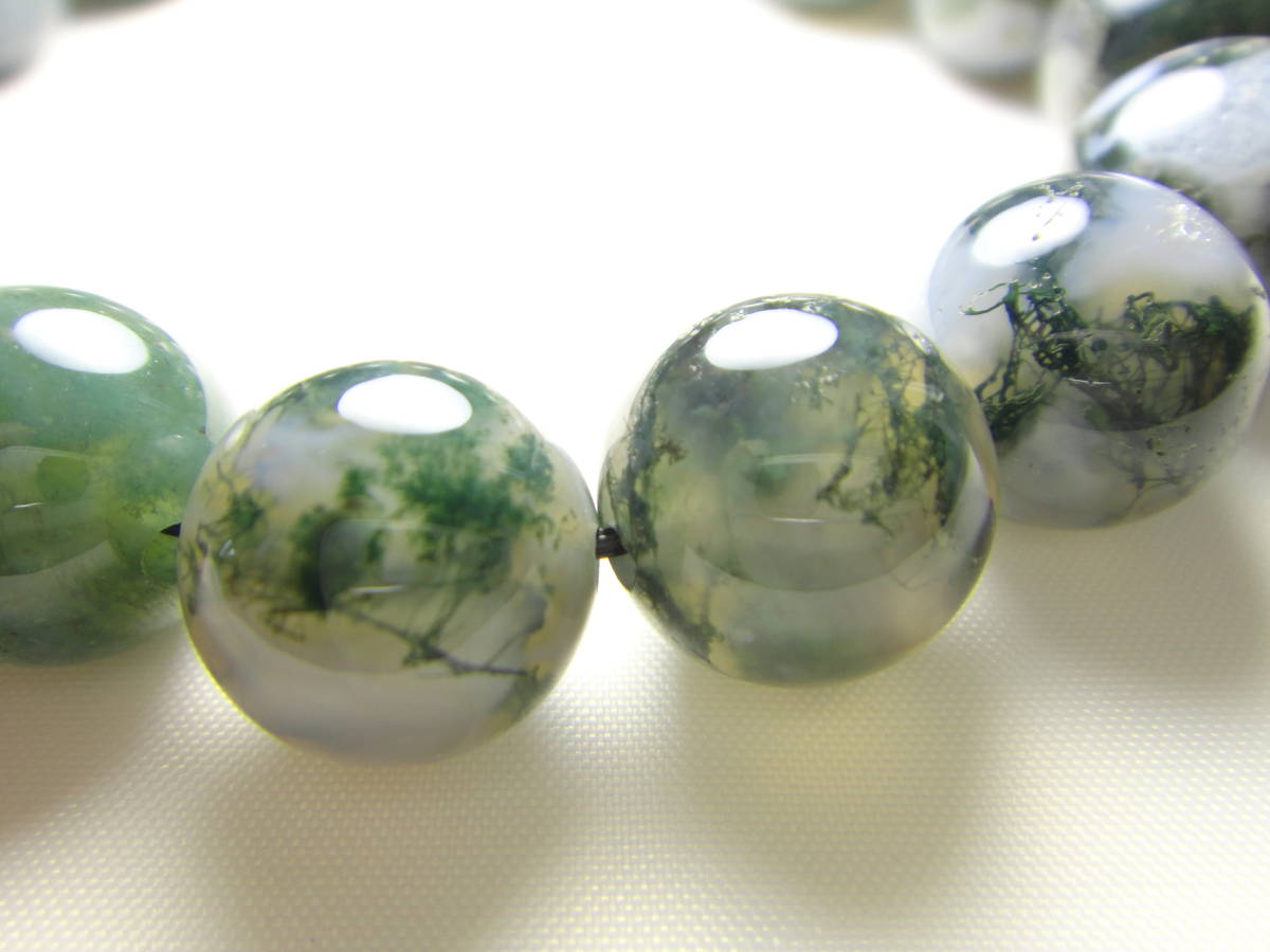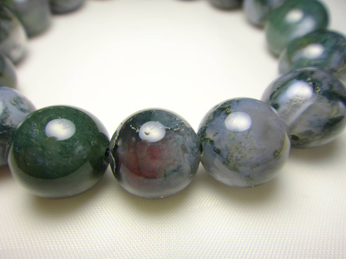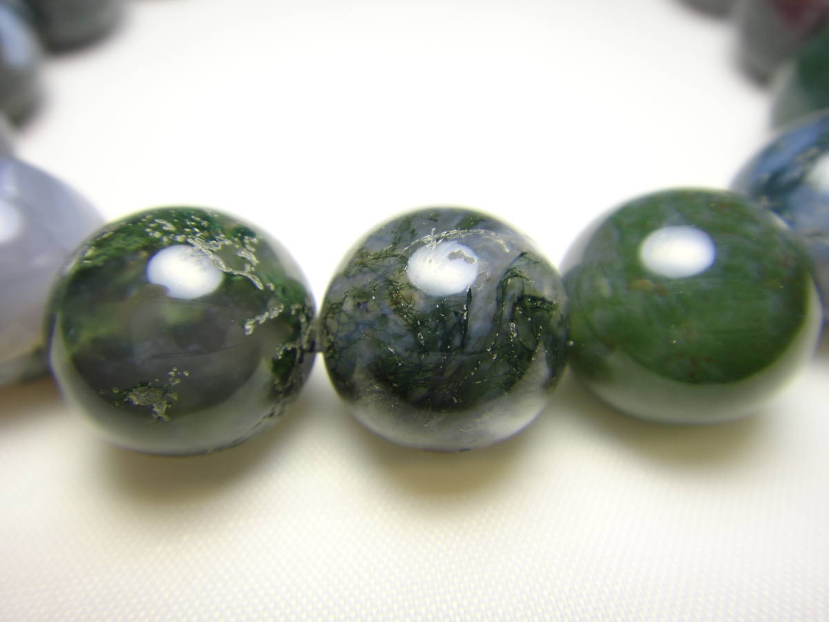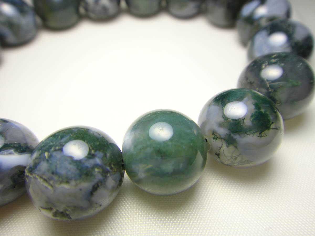 天然石 モスアゲート 約12~12.5㎜玉 大玉! ブレスレット Y214