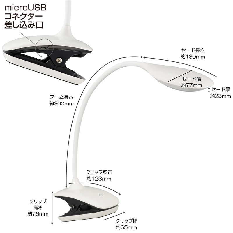 ヘッド…(約)幅77×高さ23×奥行130mm、アーム…約300mm、クリップ…(約)幅65×高さ76×奥行123mm
