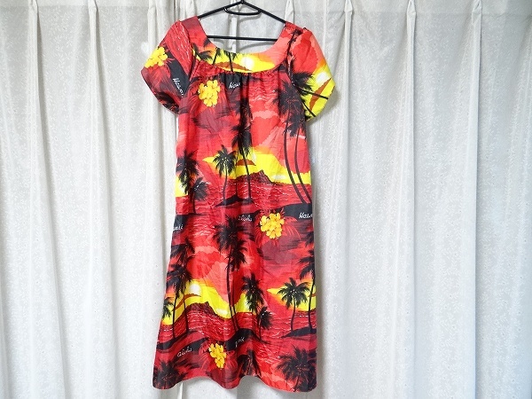 美品 HAWAII ハワイ製 Royal Crearions フラダンス ムームー ワンピース ドレス ハイビスカス柄 結婚式 衣装 Sサイズ