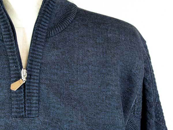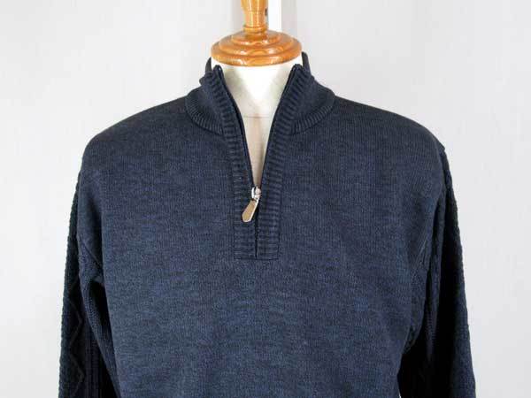 秋冬物となります。 【ポリエステル生地を使用/編地を変化】 ポリエステル素材を使用したジップセーター(ニット)です。 しっかりとした素材感です。 【デザイン・ディティール・裏地にポリエステル・フリース素材のチェック柄】 プルオーバーのジップハイネックセーターです。 本体部分と袖の編地を変えています。 袖部分はケーブル編みの編地柄アラン(インターシャ)としています。 ポリエステル・フリースの裏地(チェック柄)を付けたボンディング仕様。 あったかセーターです。 袖口・ウエスト部分はリブニット仕様の絞ってあるタイプとなります。 シャンブレーがかったいわゆる「杢」タイプの紺となります。 【スタイル・シルエット・フィット感】 シンプルで着やすいニットセーターです。 ゆったりシルエットです。 |