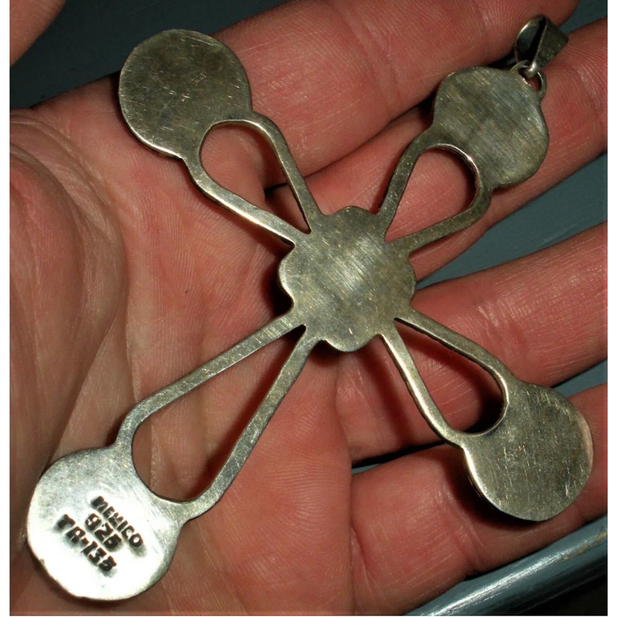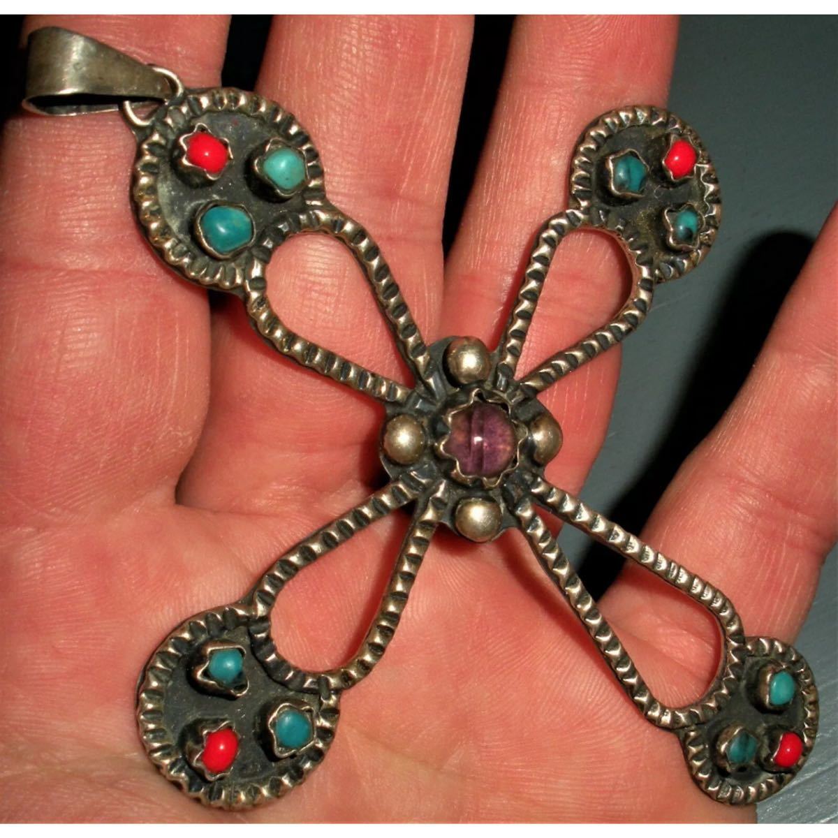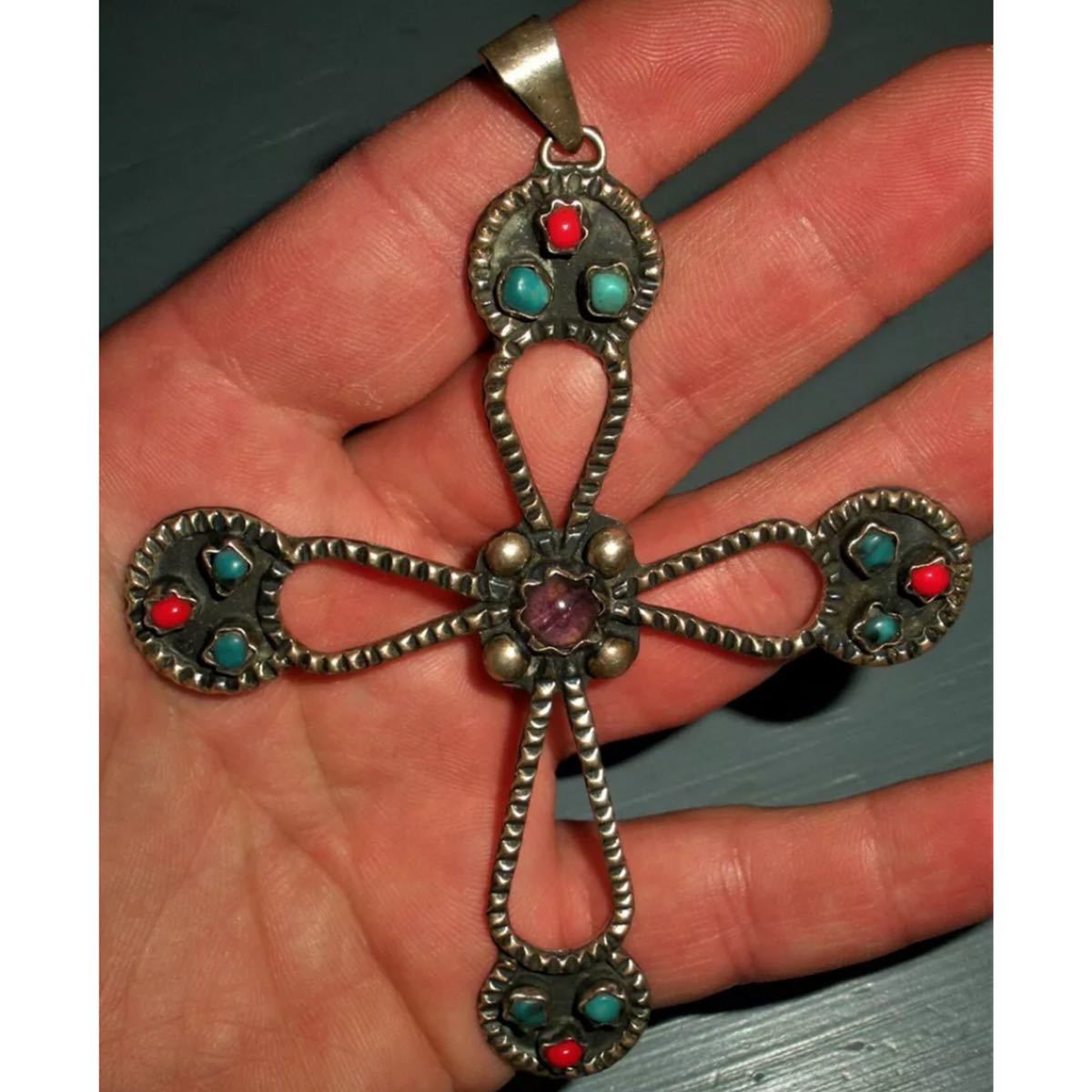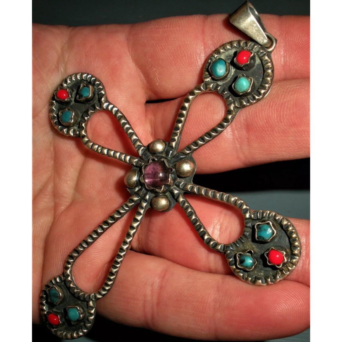 商品名:VINTAGE MEXICAN 1960’s TAXCO LARGE CROSS TURQUOISE CORAL SILVER PENDANT