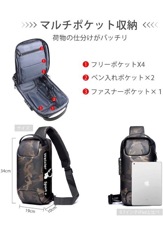 【大容量8個所ポケット】コンパクトなサイズでも収納力抜群の大容量設計。内部にはたっぷり収納と適材適所の7個所ポケットがあり、背中の盗難防止ポケットに合わせて総計8個のポケットで、iPad mini、傘、パスポート、財布、鍵、カード、ペン、充電器、文庫本、ペットボトルなど普段の持ち物を細かく分けて収納できます。アウトドア、スポーツ、ゴルフ、ウォーキング、旅行、登山、サイクリング、ハイキング、通学などに最適だと思います。重さ:約0.48kg サイズ:34CM×19CM×10CM。