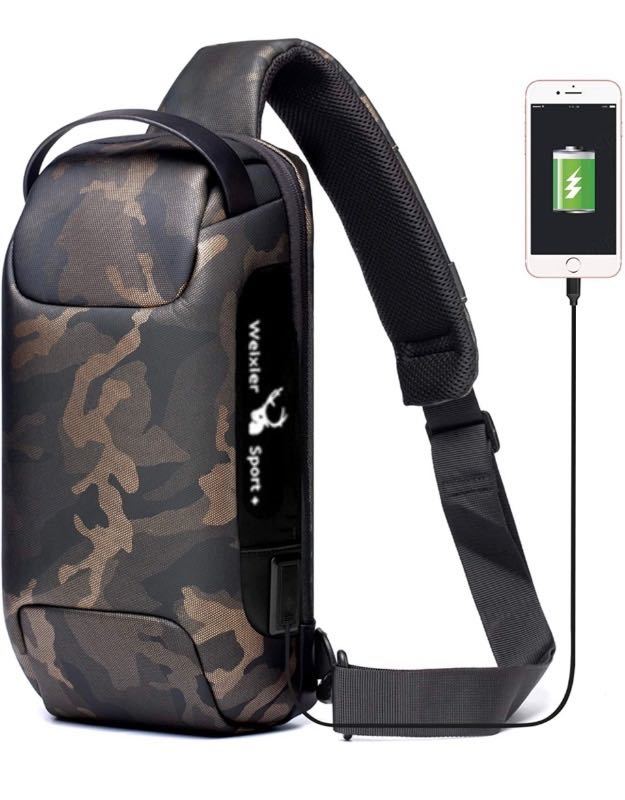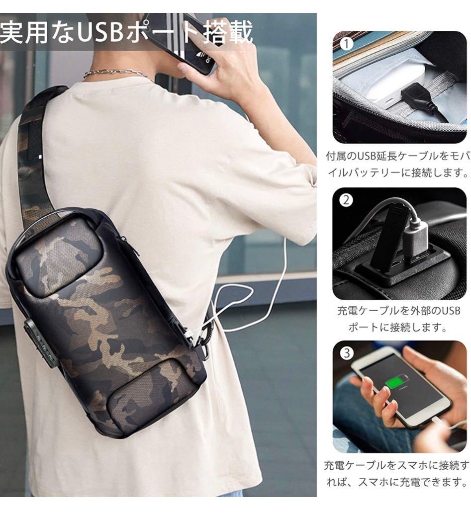 【USBポート搭載】内蔵の改良されたUSBポートが付属しており、バッグを背負ったままモバイルバッテリーを接続して、スマホに充電しながら通話できる。