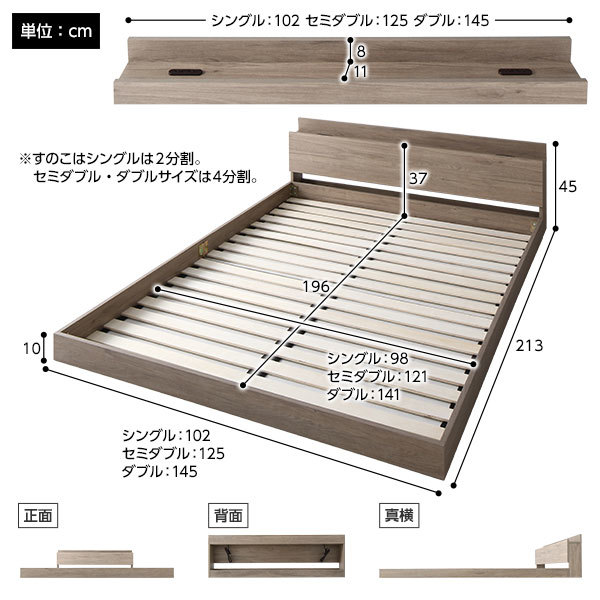 ベッドフレームには必ずスプリングマットレスを乗せてご使用ください。