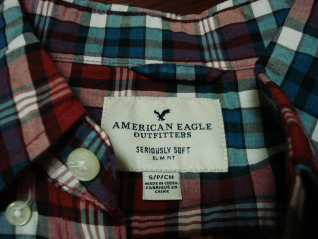 アメリカンイーグル長袖シャツ/チェック柄/S/赤/AE