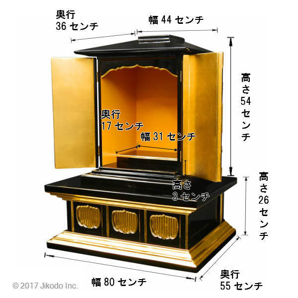 自社工場にて製作、厨子と須弥壇のセットとなります。