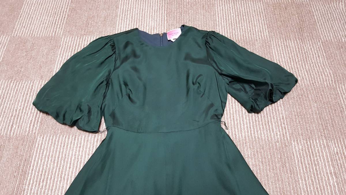 新品送料無料US6号170/92A JP11号前後Kate Spade Newyorkケイトスペードニューヨーク シルク混マチネドレス グリーン