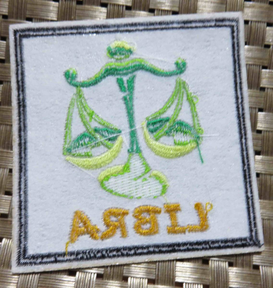 天秤 黒 星座 ブラック 正方形◆新品未使用 天秤座、てんびん座、天秤宮 刺繍ワッペン◆■激シブ◇バイク バイカー 二輪車 ロック■ミリタリー・サバゲー ・ファッション