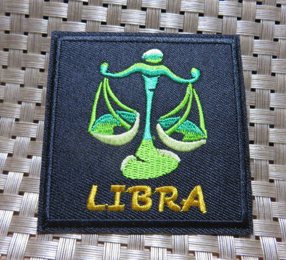 天秤 黒 星座◆新品 天秤座、てんびん座、天秤宮 激シブ刺繍ワッペン◆バイク バイカー ロック■ミリタリー・サバゲー・ファッション