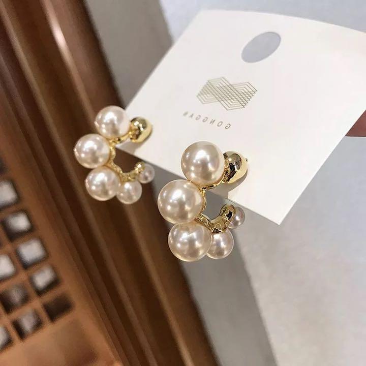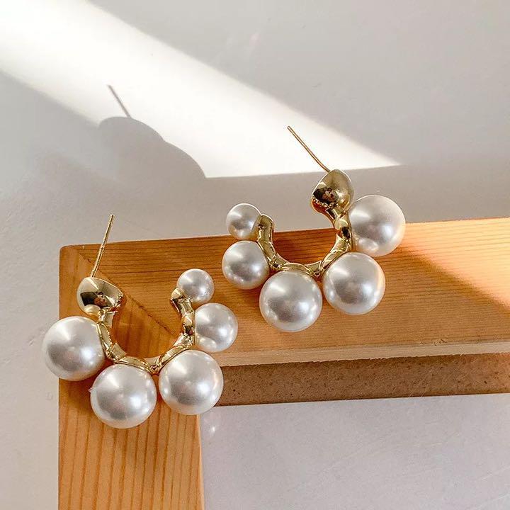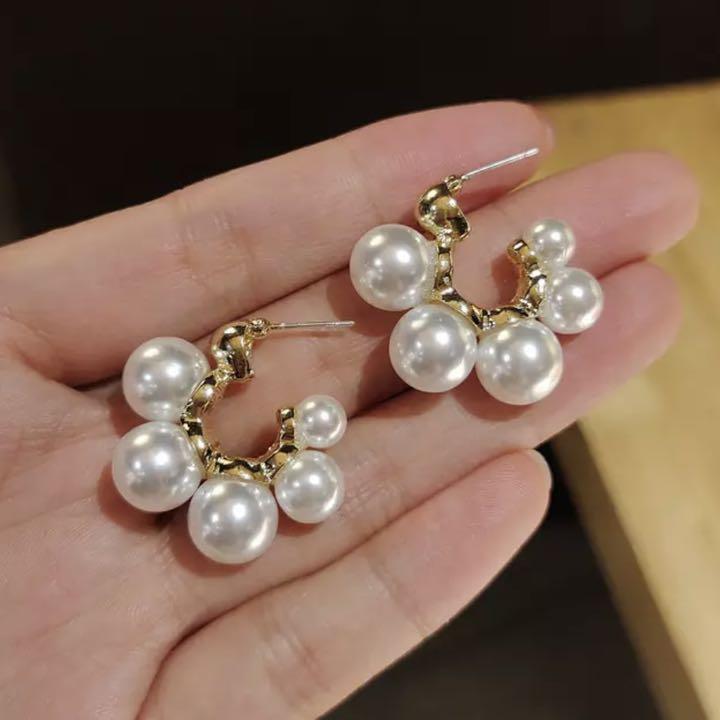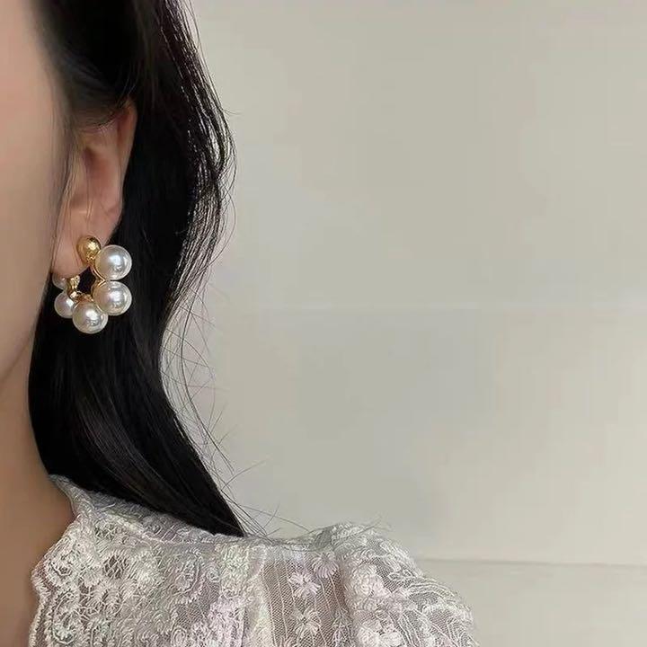 大きめのパールが5つ連なるレディなピアスです^ ^