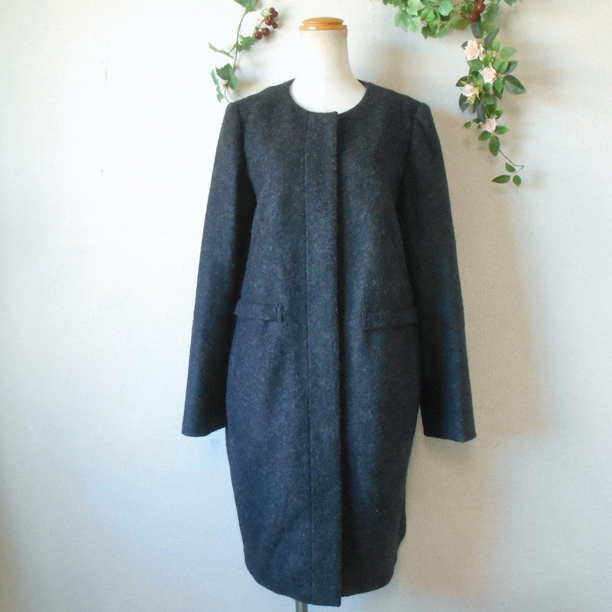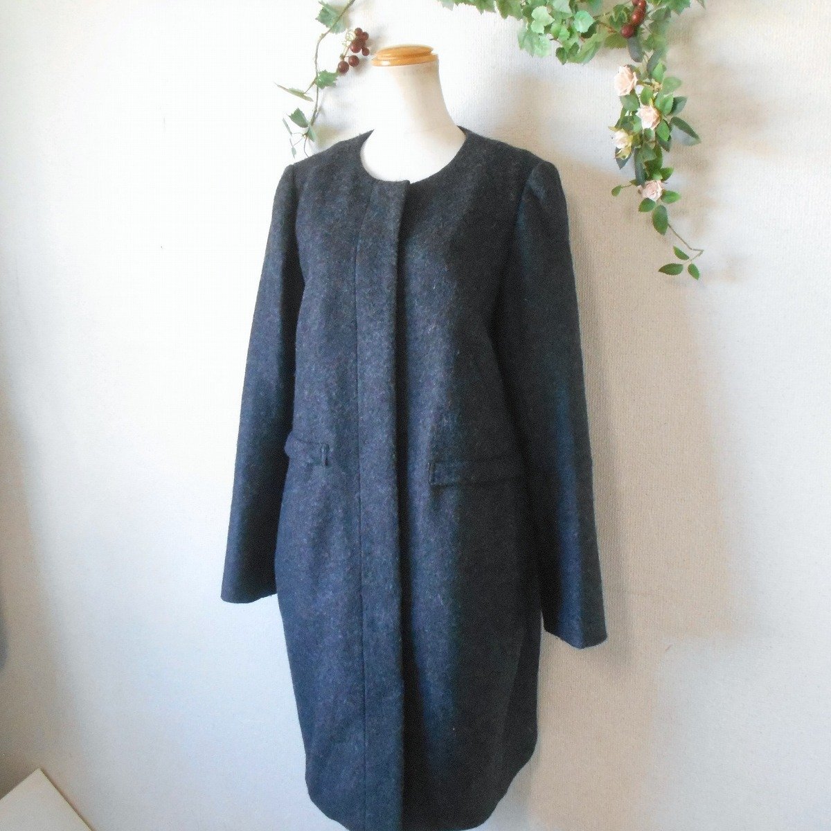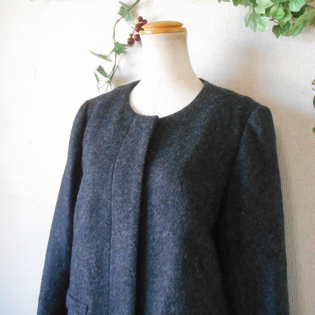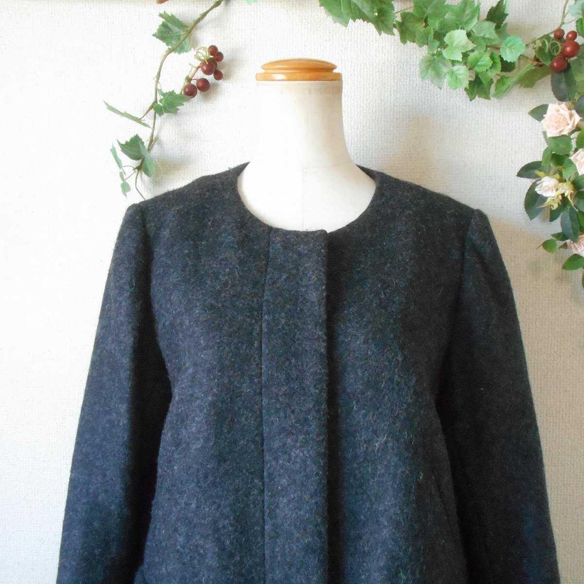 【ポイント】ブルーフォンセのレディース用コートになります。お色は濃いグレー系(黒に近い)で冬を中心に着ていただけるお品です。前は隠しボタンになっていて、とっても素敵な一着です。