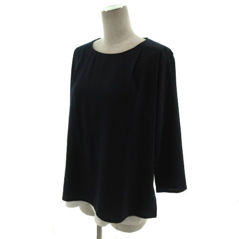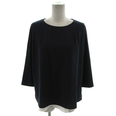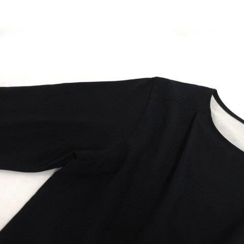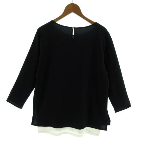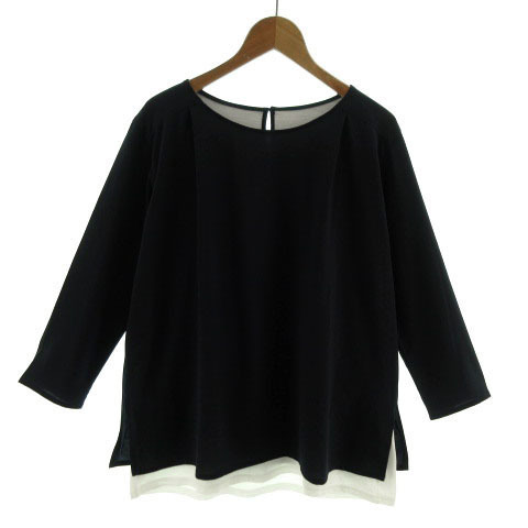 ラエフ la.f... カットソー 長袖 レイヤード 切替え 日本製 ネイビー 紺 ホワイト 白 2S レディース