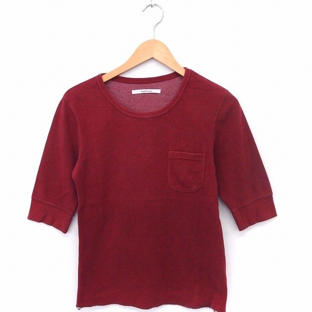 ハードカバー hardcover Tシャツ カットソー 丸首 五分袖 コットン 綿 M レッド 赤 /FT8 レディース