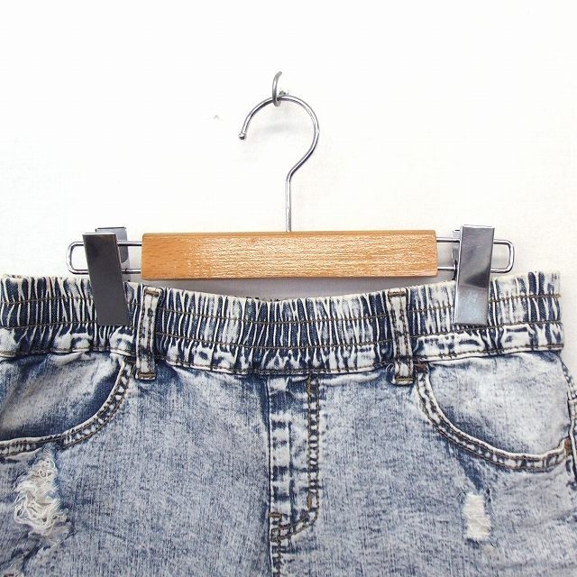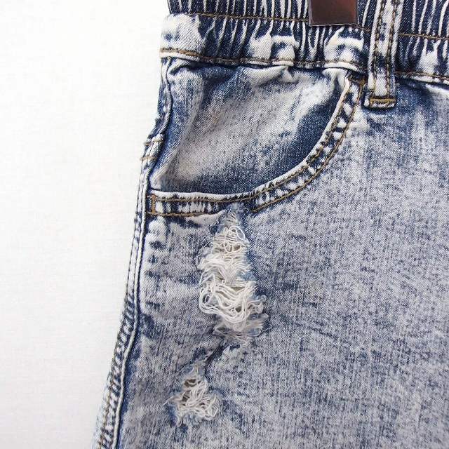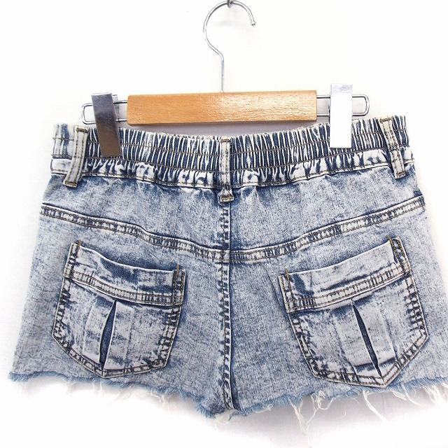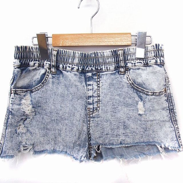 パンツ ショート ケミカルウオッシュ ダメージ加工 カットオフ コットン 綿 M ブルー 青 /FT37 レディース