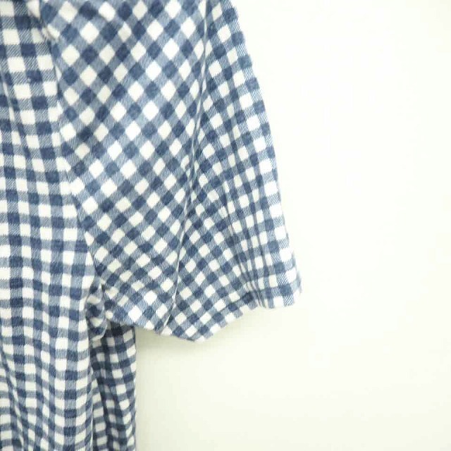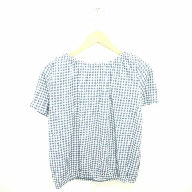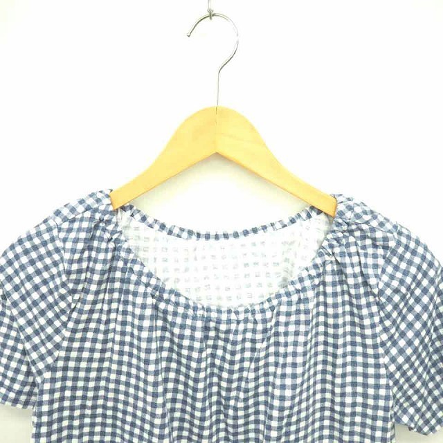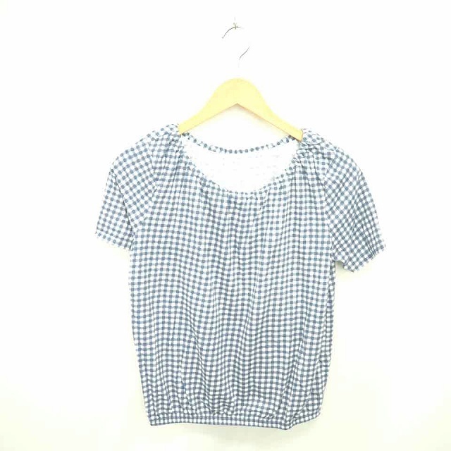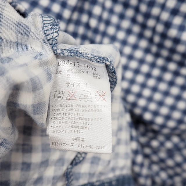 ハニーズ カットソー Tシャツ 丸首 チェック 半袖 L ブルー ホワイト 青 白 /TT6 レディース