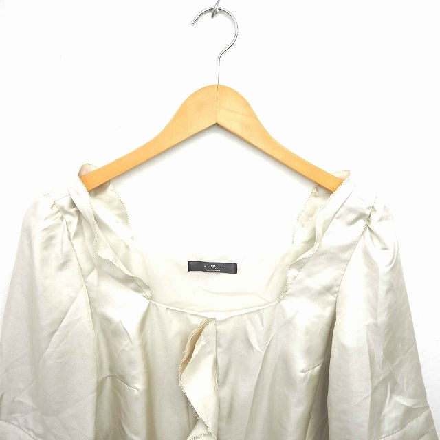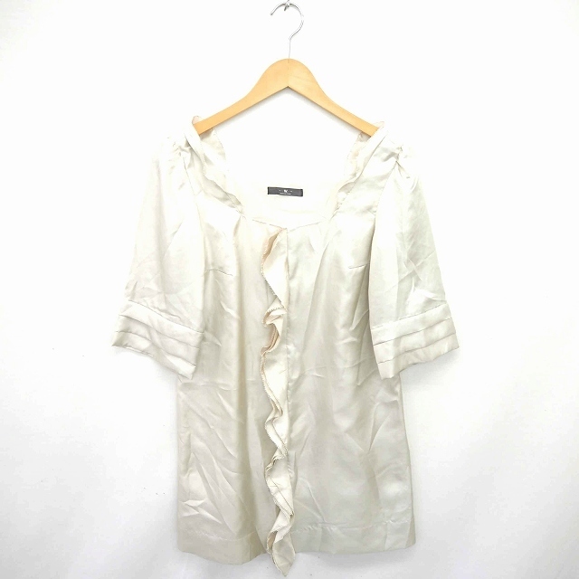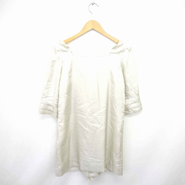ナノユニバース nano universe ワンピース ひざ丈 プルオーバー フリル スクエアネック 五分袖 S ライトベージュ 薄茶 /TT13