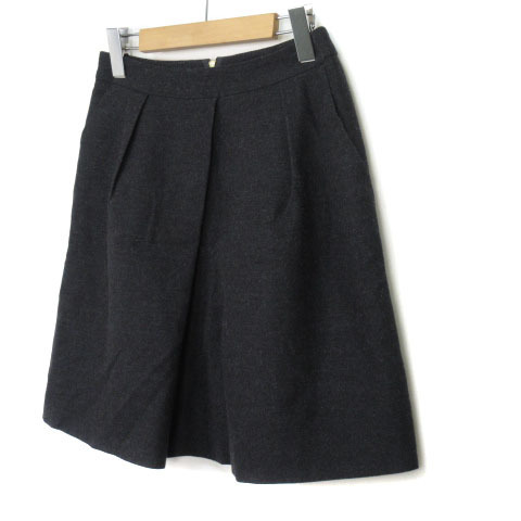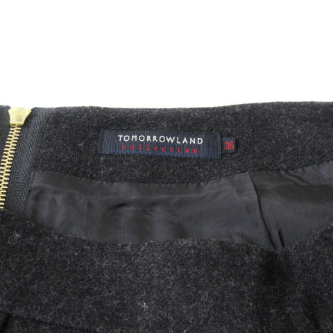 トゥモローランドコレクション TOMORROWLAND collection スカート フレア タック ウール 36 黒 ブラック レディース