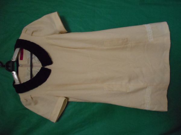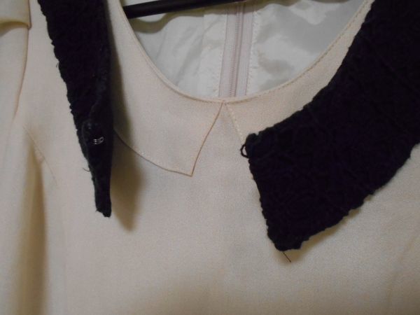 ・目立った傷、汚れもなく、全体的に綺麗な状態です ・背開閉、ファスナー+ホック使用 ・つけ襟(ボタンで取り外し可能) ・左右にポケット有り ・裾広がり、Aライン ・裏地有り ■カラー アイボリー ■表示 サイズ:2 ■実寸 肩幅:約34cm 身幅:約41cm 袖丈:約20cm 着丈:約81cm ■生地