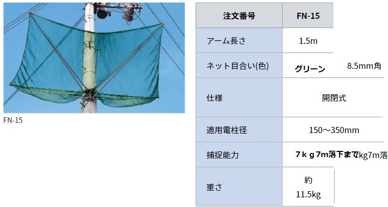 ※藤井電工 ツヨロン 落下物防止網 落下物捕捉ネットポールネット FN-15