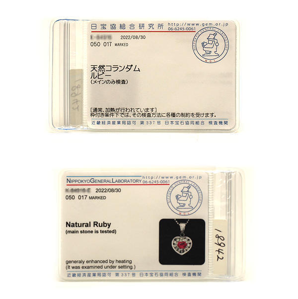 ソーティング記載 | 天然コランダム ルビー (メインのみ検査) 通常、加熱が行われています |