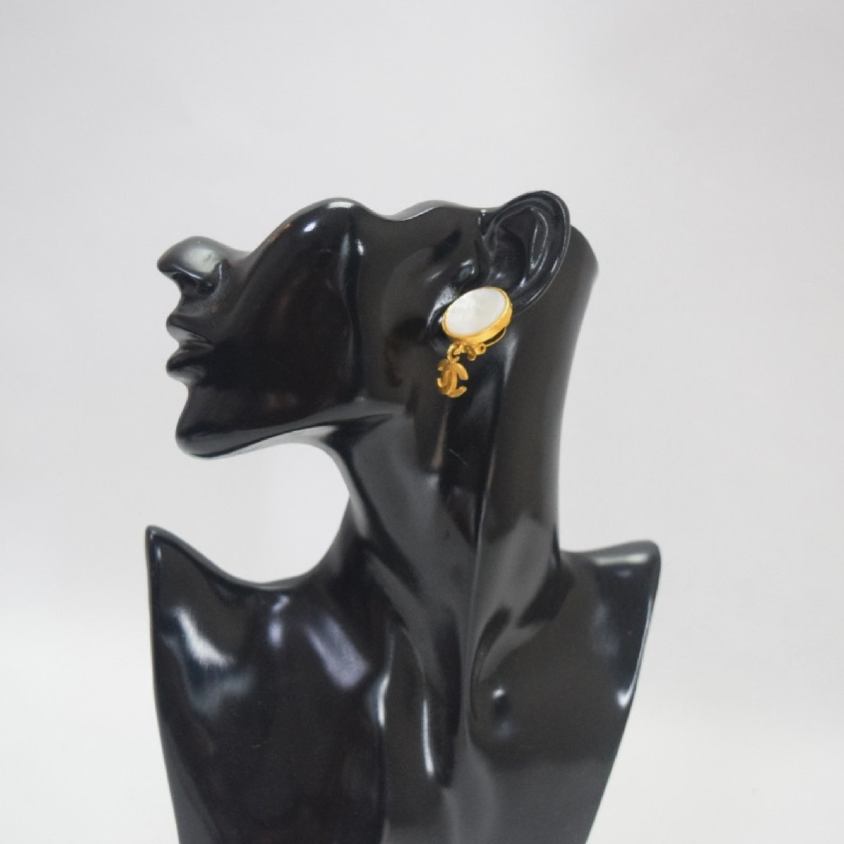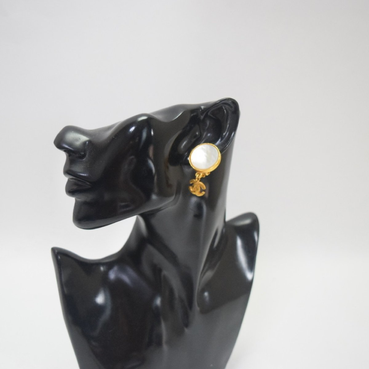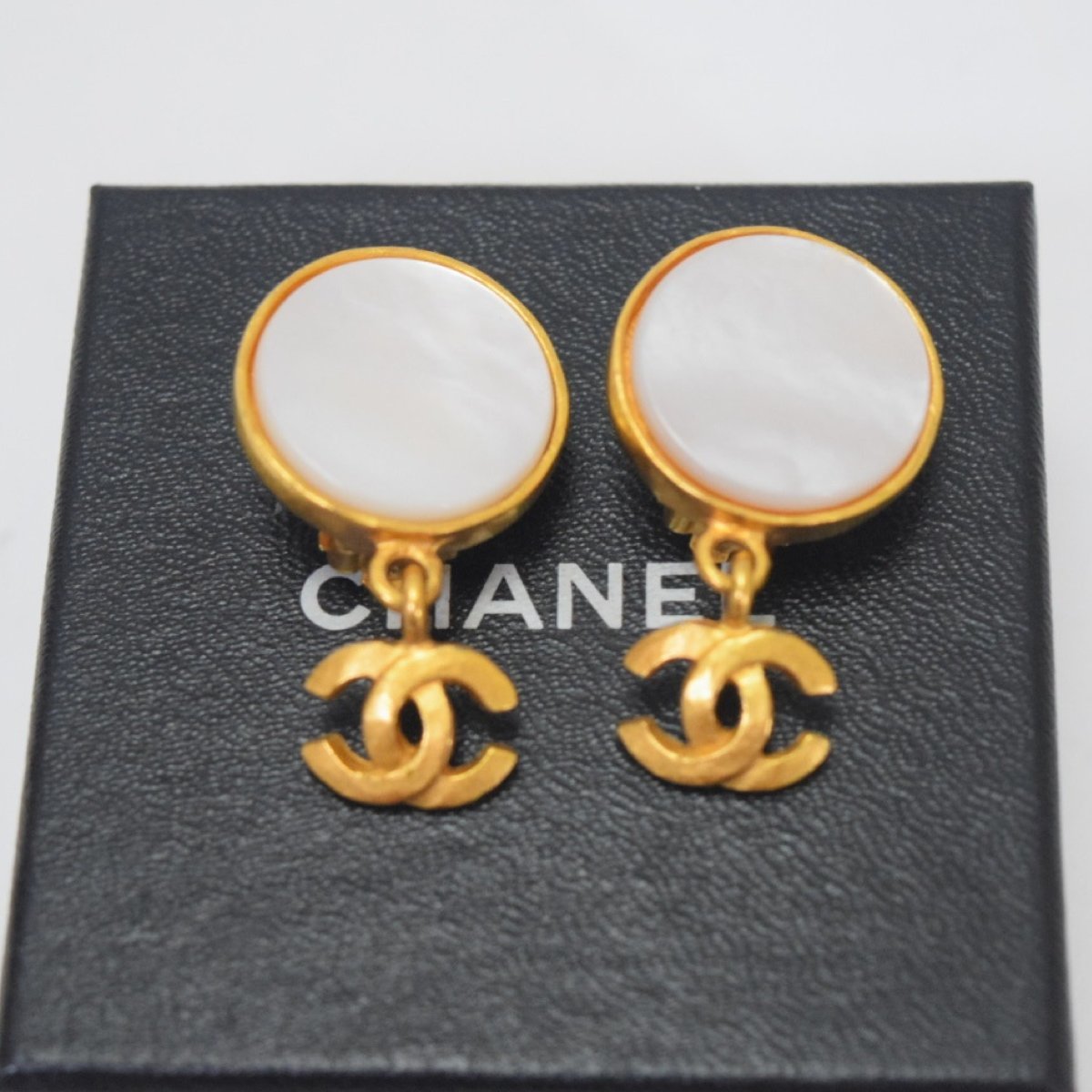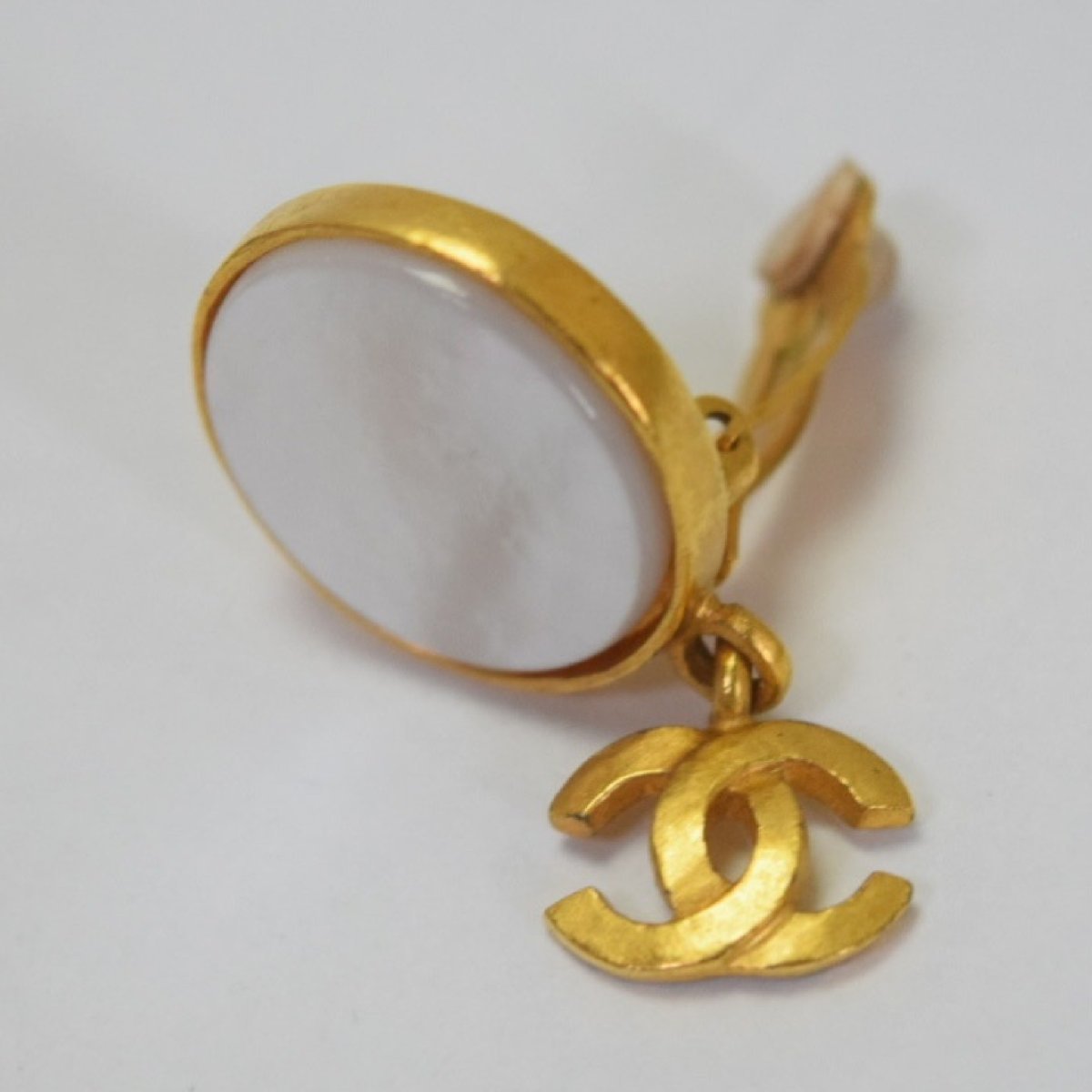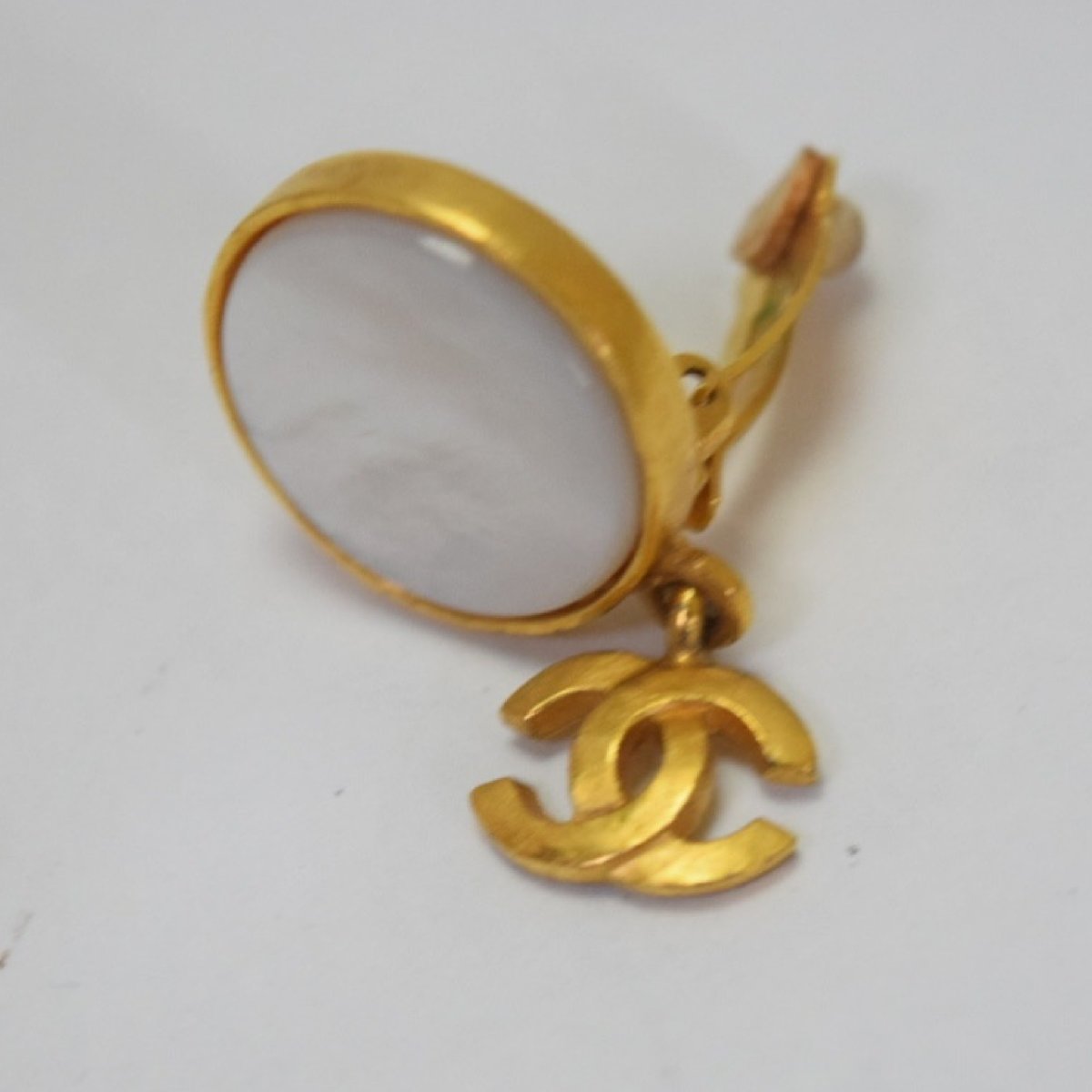 シャネルの両耳用イヤリング、大ぶりのホワイトシェル×ココマークのとても存在感のあるイヤリングです。