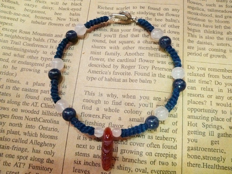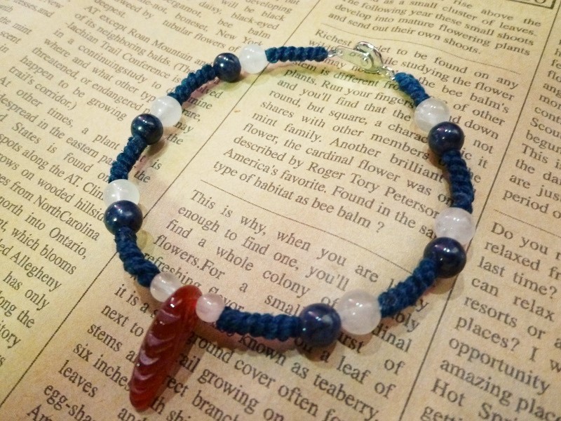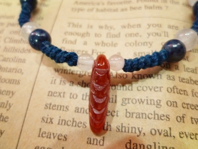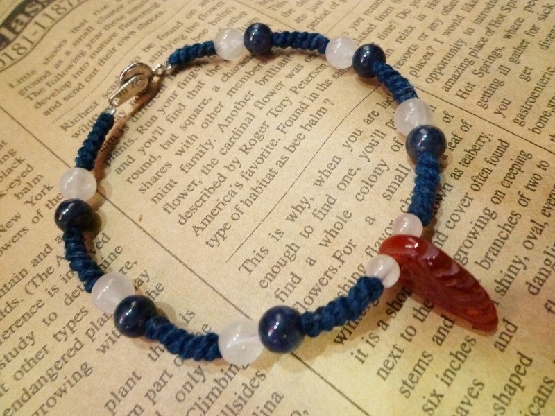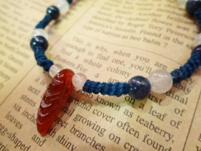 カーネリアン羽 サファイア ローズクォーツ マクラメブレスレット