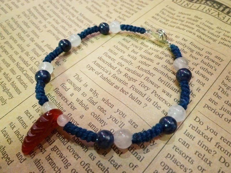☆カーネリアン羽 サファイア ローズクォーツの高品質のマクラメ ブレスレット商品です。