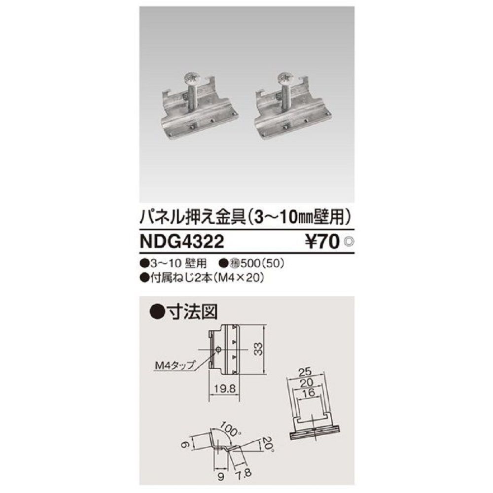 パネル押え金具(薄壁用)3-10mm壁用 50個入 東芝 NDG4322-50