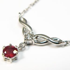 ルビーを使用した揺れるシンプルデザインのプラチナペンダントネックレスです。