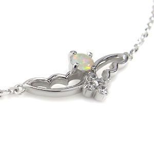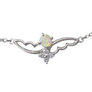 10月誕生石オパールを一粒使用した、フェザーデザインのプラチナ製アンクレット(ブレスレット)です。