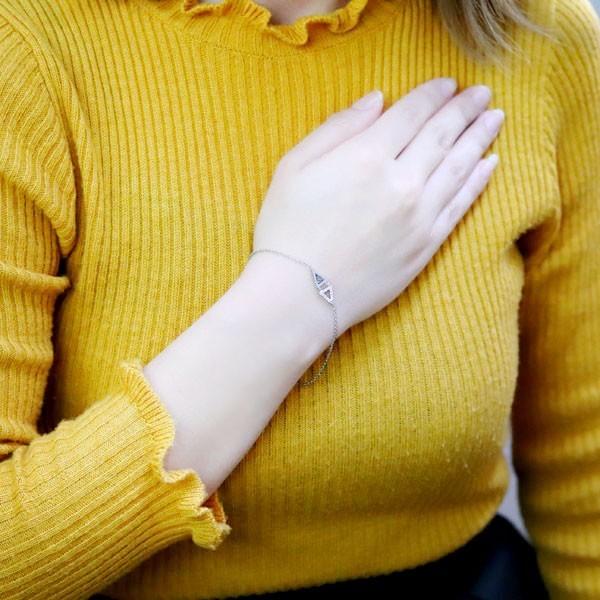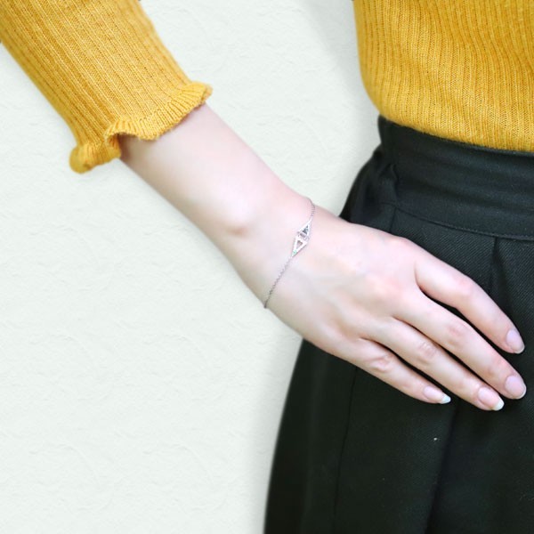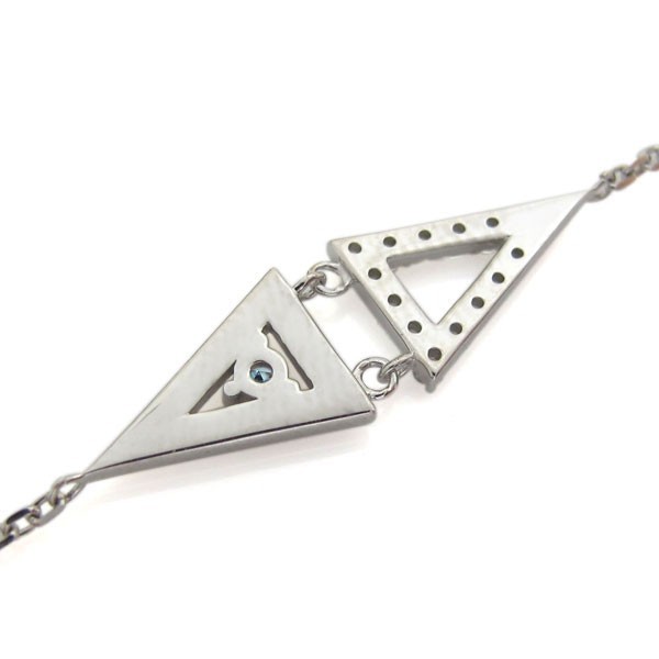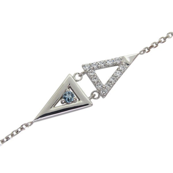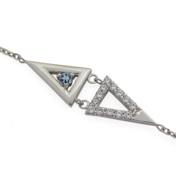 3月誕生石アクアマリンサンタマリアを使用したプラチナ製の、トライアングルデザインのアンクレットです。