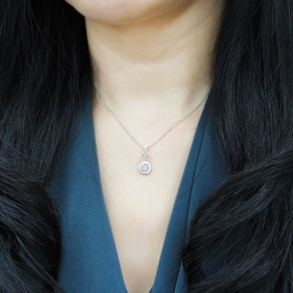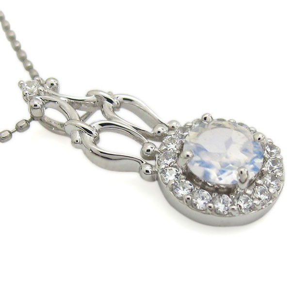 6月誕生石ロイヤルブルームーンストーンを一粒使用した、10金製の取り巻きデザインのアンティーク調ネックレスです。