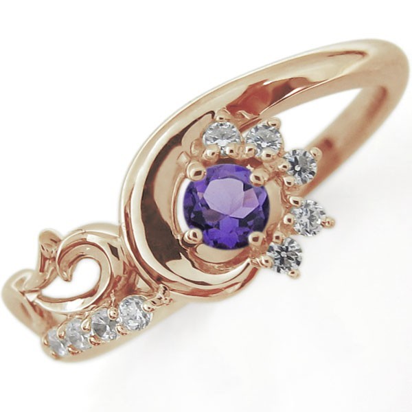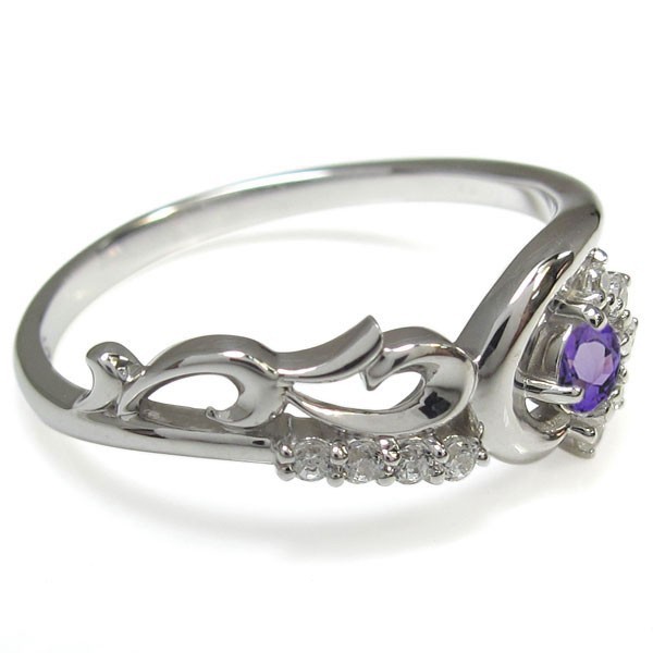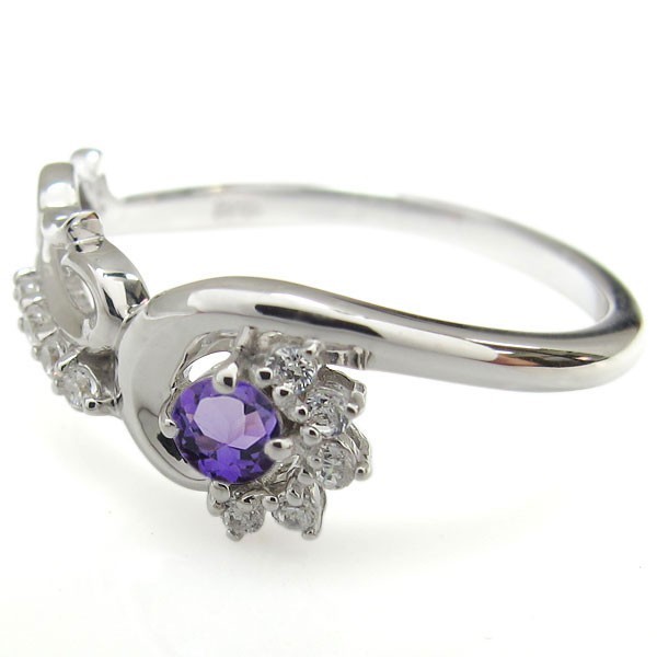 ■石名:主石 アメジスト(約 3.0mm/天然石使用)脇石 ダイヤモンド(9石合計で約 0.09ct/天然石使用)